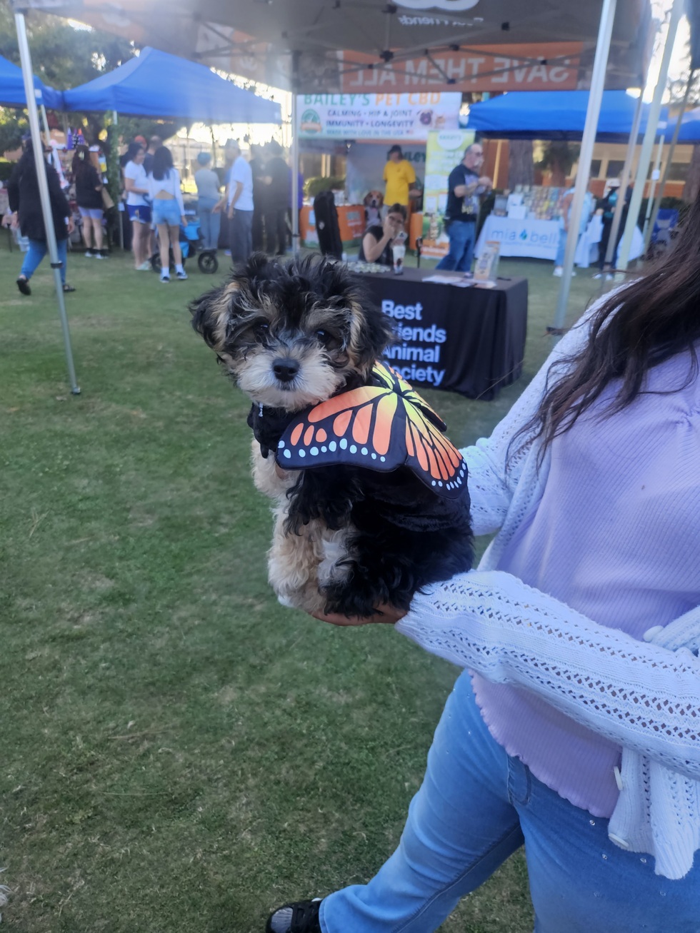 Chiquita is 2 months old. She is a very social butterfly who loves meeting people and giving kisses and loves belly rubs. She is a yorkie poodle mix.