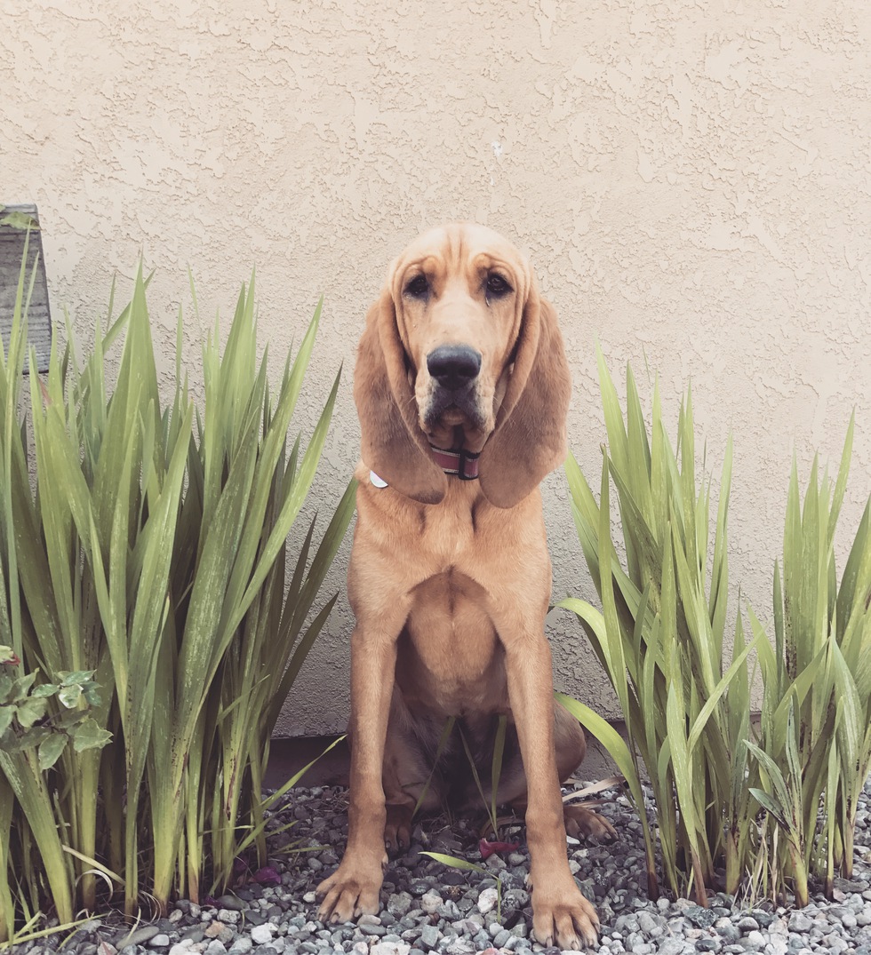 Cabela is a happy bloodhound. She loves training and the treats that come with it! She's in training for therapy dog to visit senior homes and schools. She also loves striking poses for pictures!