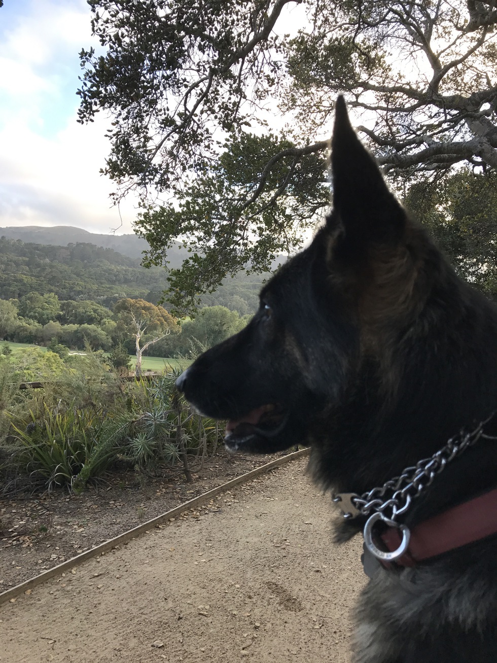 We adopted Freddy from a friend of a client of mine. Freddy was raised by the Monks out pass Carmel Valley, as a puppy. Then a couple adopted her, but after having a child, they needed to give her up. Freddy enjoys her walks with me all over our property, and snacking on Milk Bones.