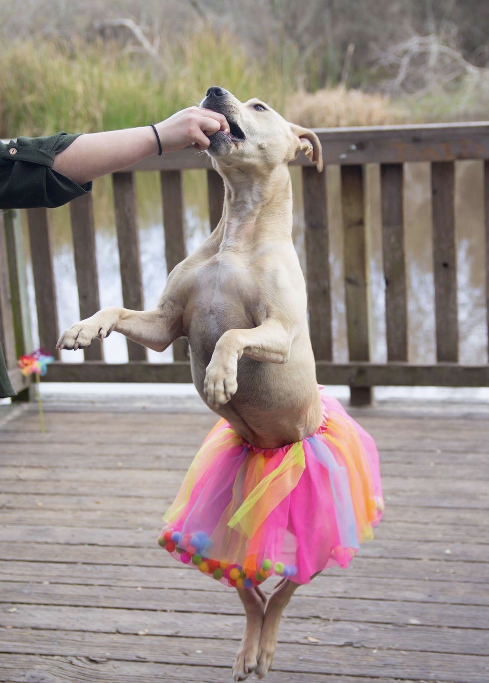 I adopted Luna from the Monterey spca in February 2016. She has the most bubbly personality and is such a character. she didn't have a very interesting life before me but She comes to work with me everyday and goes just about everywhere with me!