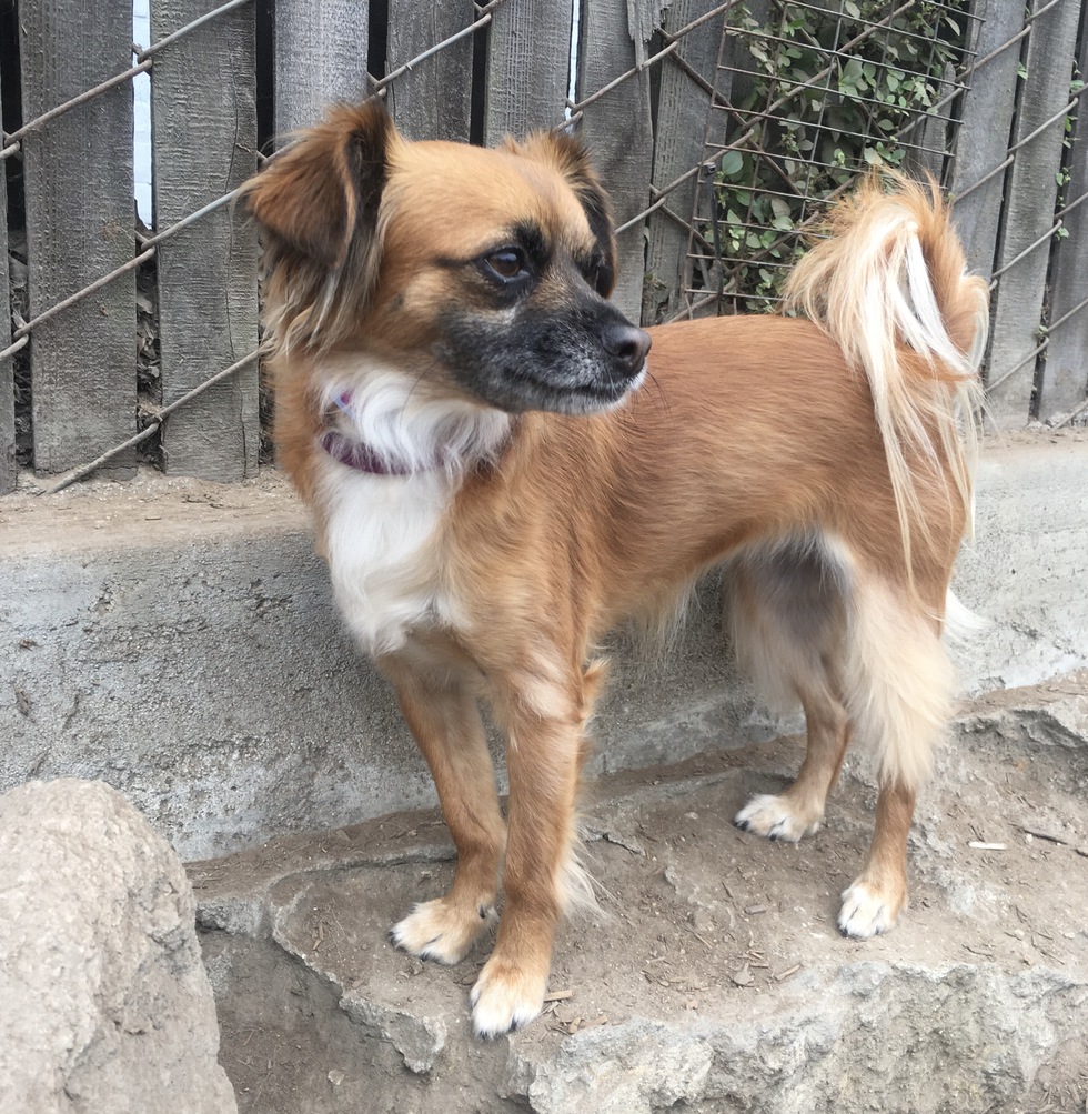 Cinnie was found wild with matted fur in Salinas. Ths SPCA spayed her and cleaned her up. She was depressed and mistrusting of people when we met her but very sweet and gentle. We took her to the outside adoption pen to visit with her and she crawled into my 10 year old daughters lap and gave her a lick on the chin. We all fell in love and arranged for a meet and greet with Harpo our dog at home. They immediately liked each other. Cinnie joined our family and we all love her dearly! She is such a good, sweet dog. Cinnie is our third rescue from the SPCA. Our family was distraught when our beloved Trixie passed away a little over 2 years ago from cancer and old age. We still miss Trixie but we are so grateful to have Harpo and Cinnie! They bring so much joy to our family and we love them dearly!