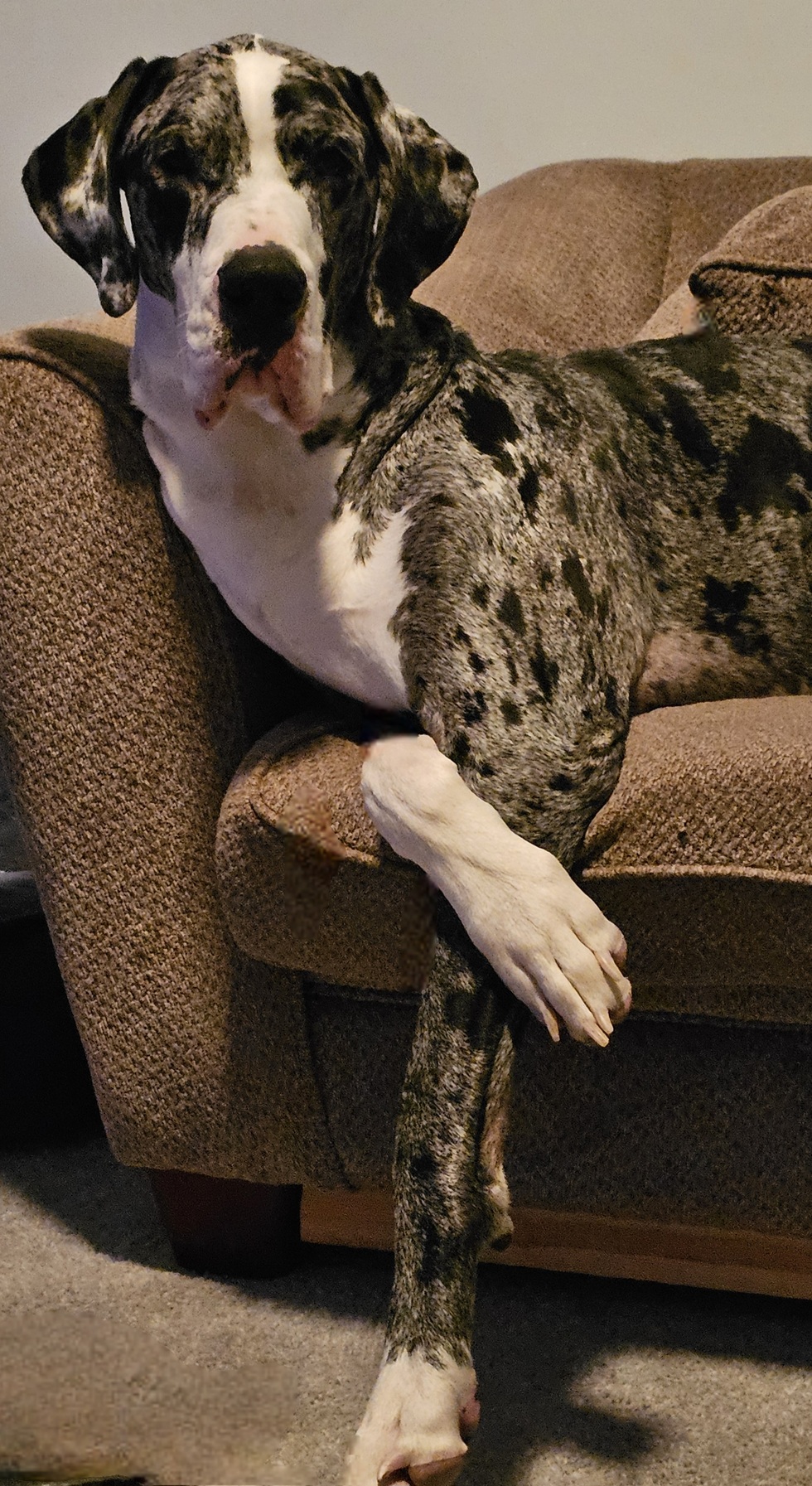Rocket is a true velcro-dog. He must be wherever his human Momma is, and considers all space as his own. If not allowed on the furniture , he will turn around and sit on you. He will hang his head and pout if yelled at. Rocket loves to chase woodland creatures big and small from our backyard. He loves raw beef marrow bones, and vanilla ice cream.