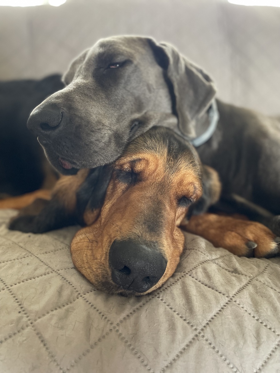 Dilly came to us from Save Rocky. She is a very sweet, energetic, adorable girl who loves attention and chew toys. We can’t imagine life without her! Her friend is Magoo, our rescue Bloodhound and her best buddy.