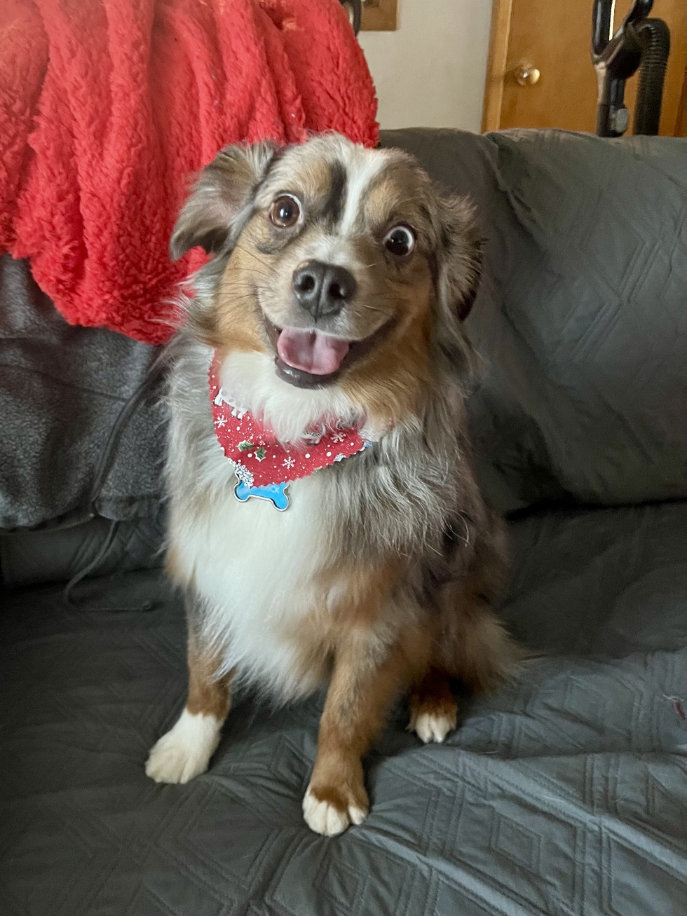 Maverick is a 3-year-old Toy Aussie and 18 pounds of pure joy. His signature smile says it all — this little guy lives to love and be loved. Maverick is the perfect mix of playful and snuggly, happily romping with his fur siblings one minute and curling up for cuddles the next. He’s incredibly social and truly has never met a stranger, greeting everyone like a long-lost friend.