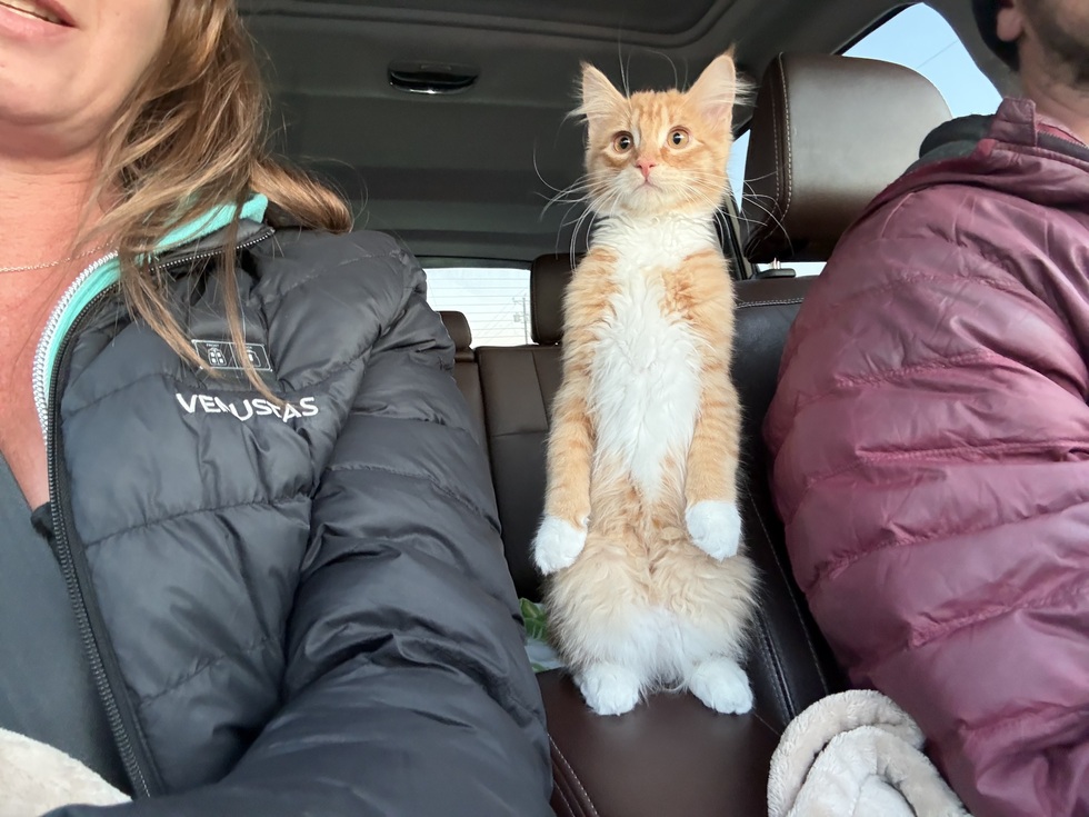 We unexpectedly took Rusty in at 5 1/2 weeks & quickly fell in love with him. We’ve since learned he’s half bengal and half orange tabby, which explains a lot! He’s wildly bright, curious, loyal, affectionate, obstinate, athletic (albeit clumsy) & all around a joy <3 . We’re also convinced he’s part red panda, & this is his adorable red panda stance!