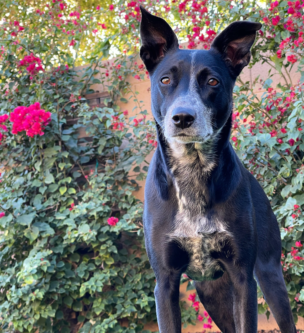 Kona was adopted as a puppy after she was found wandering along a road in the desert of Arizona. She is a heeler/lab mix that loves all people and her cat brother, Malcolm. Kona moved with her family to St Croix in 2024 and loves being an island dog. She spends her day sunbathing on the porch and hunting lizards.