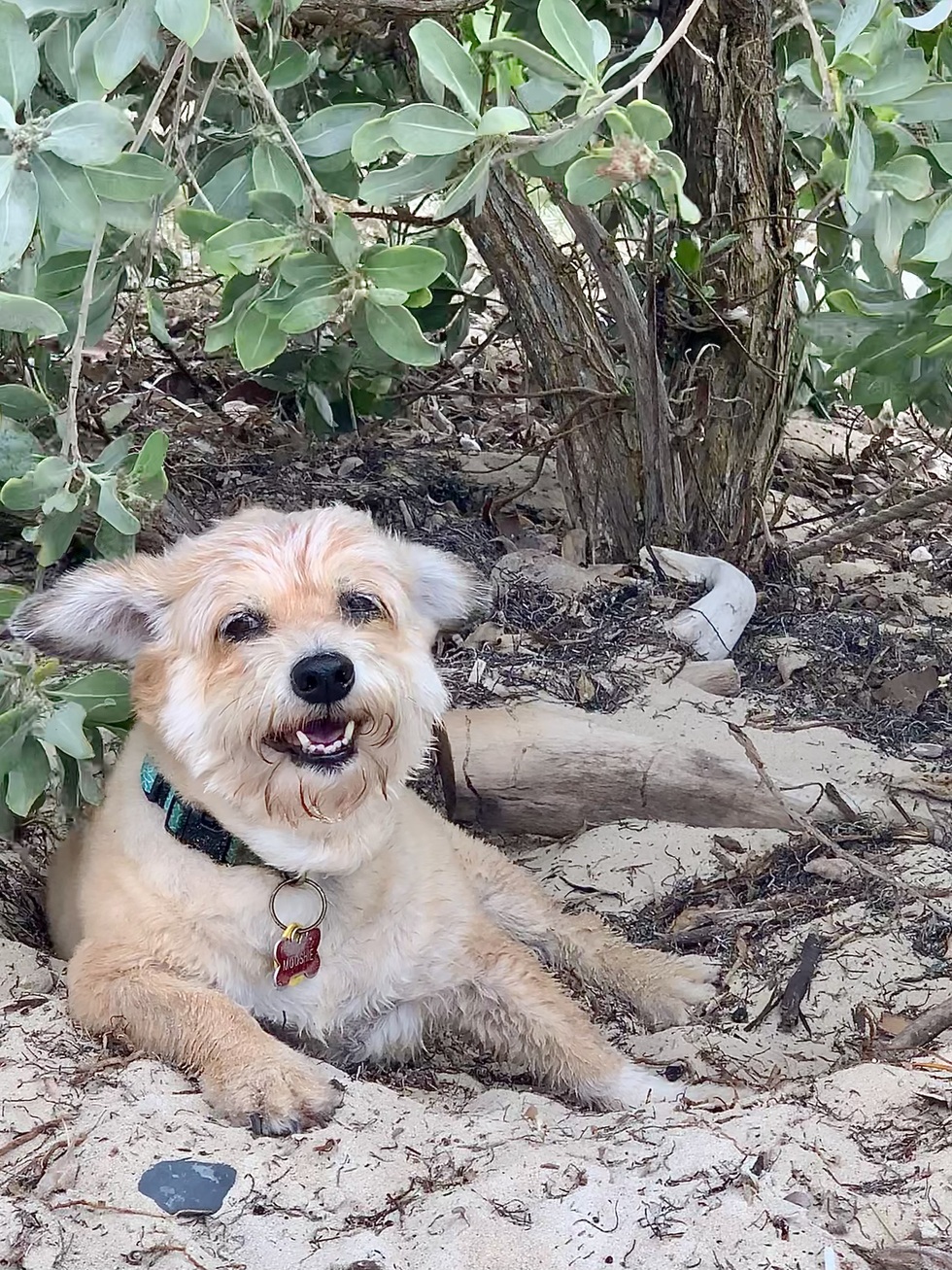 I’m Mooshie! I was abandoned and brought to the SCAWC. I had heartworm, and a tumor on my hip. Little did I know I would be put down if my parents hadn’t stopped by the shelter on their way home from the beach. As Mooshie’s parents, we couldn’t have asked for the sweetest, gentlest, most polite pup. She’s a regular on the boardwalk, loves pets from all, loves her smiley 😍, and has given us 10 years of pure love! A cute story, many years prior to rescuing Mooshie, the internet installer named our wifi copper puppy, we didn’t have a dog, as serendipity would have it, Mooshie came into our life and her white coat turned Copper! ♥️