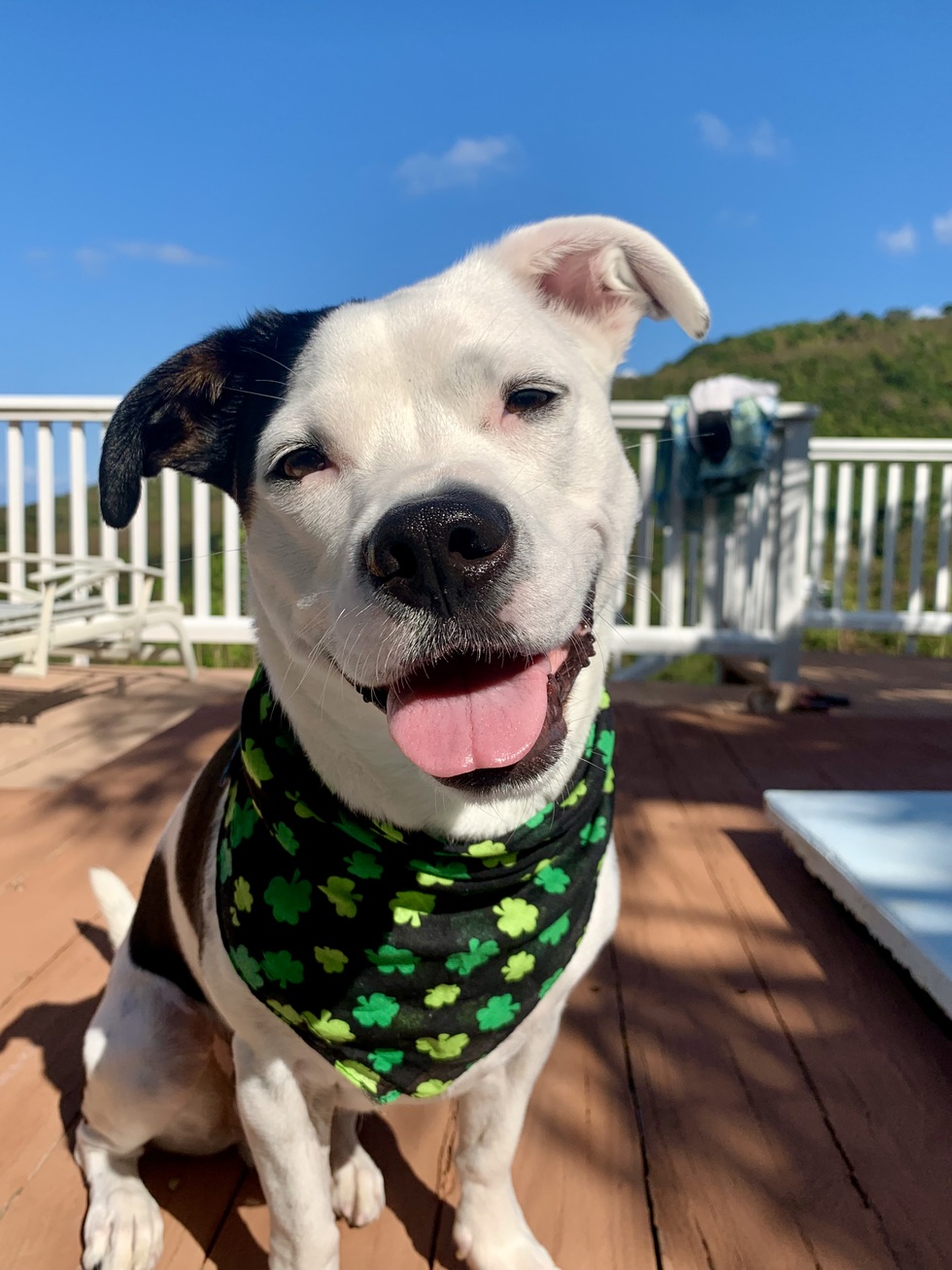Meet Tiki! He is the first mate on Tropical Tiki Tours on the beautiful island of St Croix. He was one of 11 pups rescued in the bush near a local restaurant. The very first day he was adopted was his first cruise on the tiki boat. This handsome boy has been bringing smiles and making memories with our guests ever since. He is the bestest, smartest, most handsome boy in the world! If you see him on the boardwalk make sure to stop and say hi!