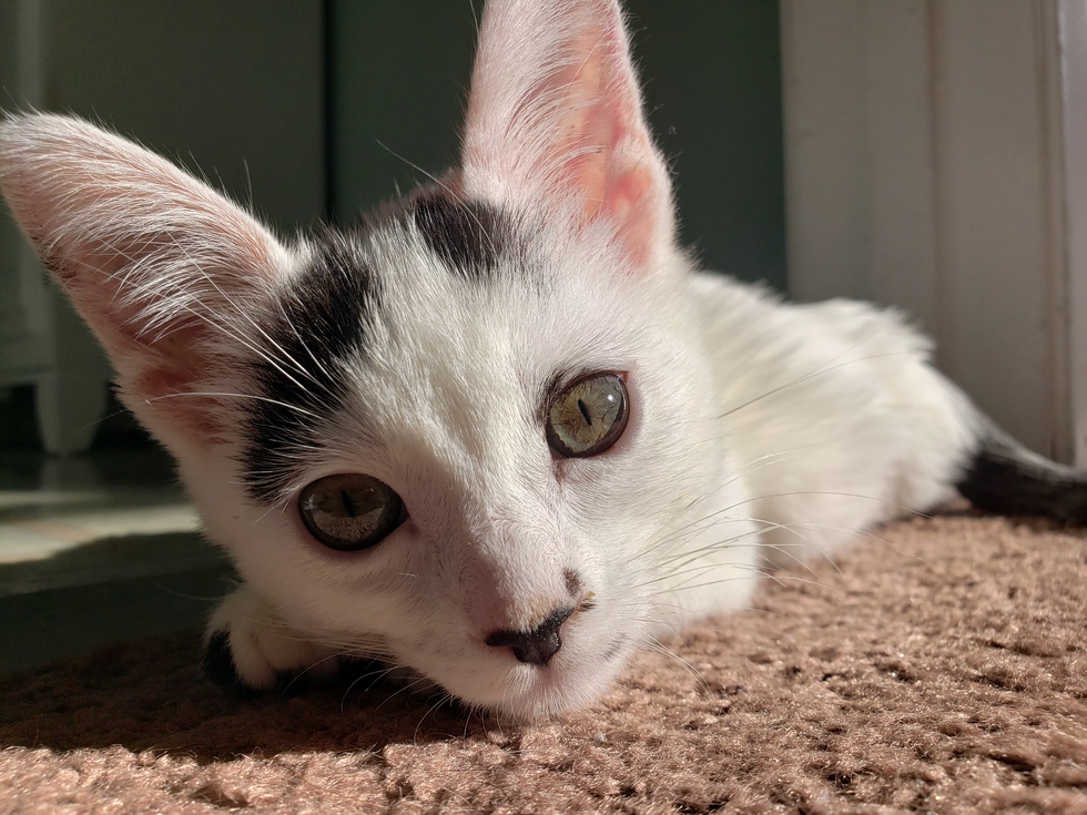 Hello my name is Nike. I was born with low born density which makes it difficult for me to jump and climb. But I don't let it slow me down. One of my favorite things to do is lie in a warm sun beam. Normally, I would have to share the sun beam with my three sisters. But on this day, I had the sun beam all to myself.