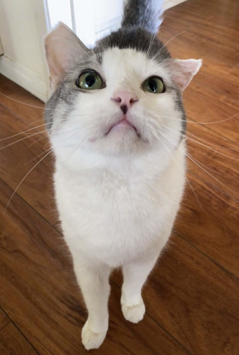 My mom says I am a king among men, and I’m inclined to agree with her. I love the finer things in life, like kicking back and relaxing on a pile of down feather pillows. The floor is for peasants and a sir of my nature receives only the best. You can often find me on my back, with my big belly paunch ready for pets. I deign to leave the bed every now and again, seeking comfort in my hammock where I can look amongst the world from the comfort of my cat tree. I like to give gentle finger bites to my people to let them know that I love them. My hobbies include standing on my humans’ heads and screaming for food at 6 in the morning, and smacking my little sister in the face.