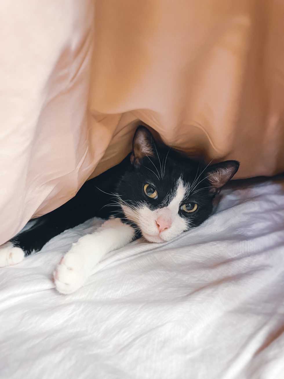 Charles moved into his new home just a short three months ago and is becoming more and more brave each day. Charles is starting to explore the view from the windows during the day and loves watching everybody walk by at night! His favorite daytime activity is curling up under the covers and taking a cat nap.