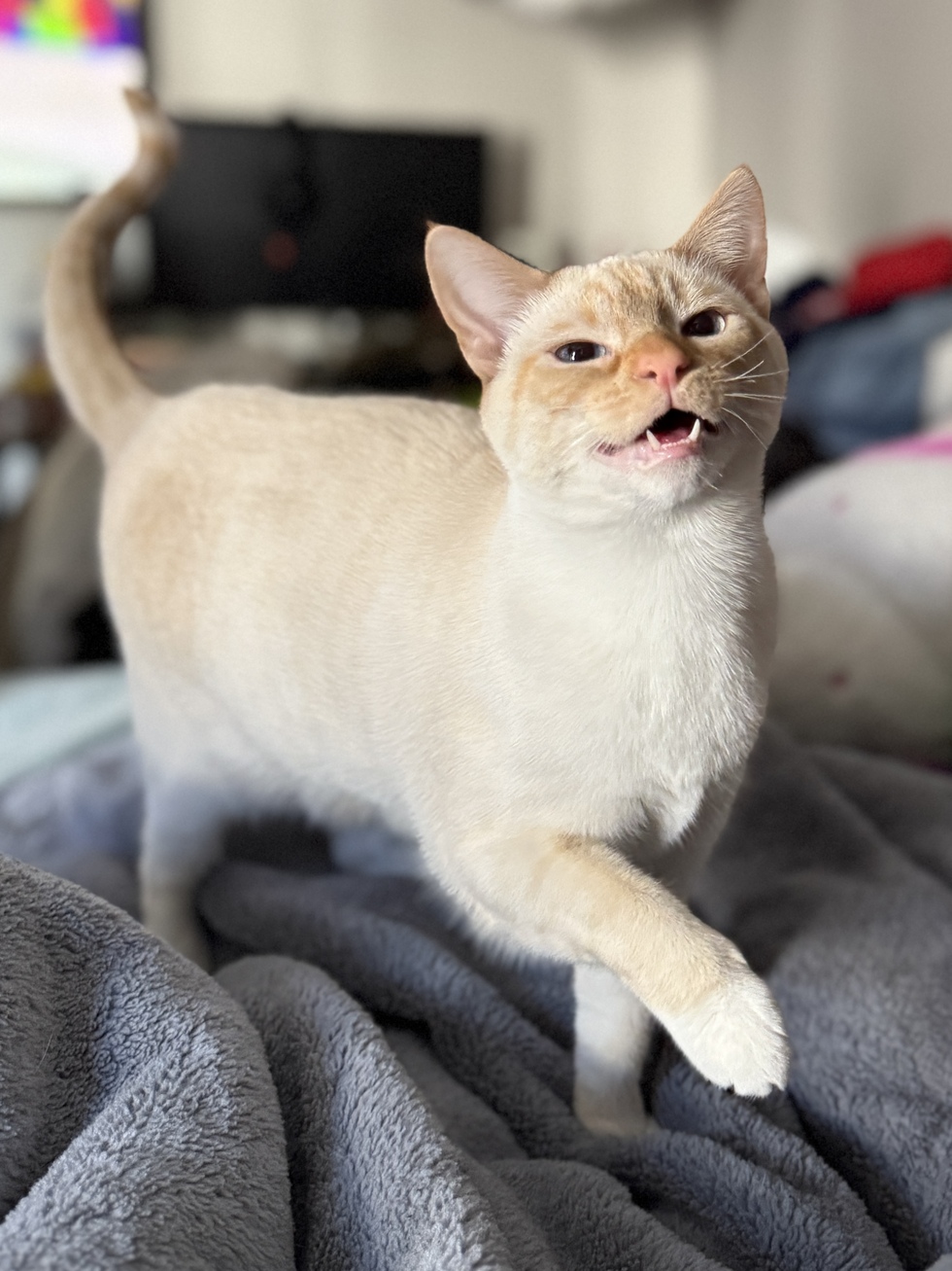 I was found all alone as a very small baby of only about 6 weeks. I had no family around me and nowhere to go but my mama’s friend found me but they didn’t know what to do with me, so my mama took me in. She took care of me while I had to get medicine to get rid of my worms and cleaned up from my fleas. Then I got to meet my big sister who I love so much, I cry for her when I can’t find her and we cuddle every night now.
