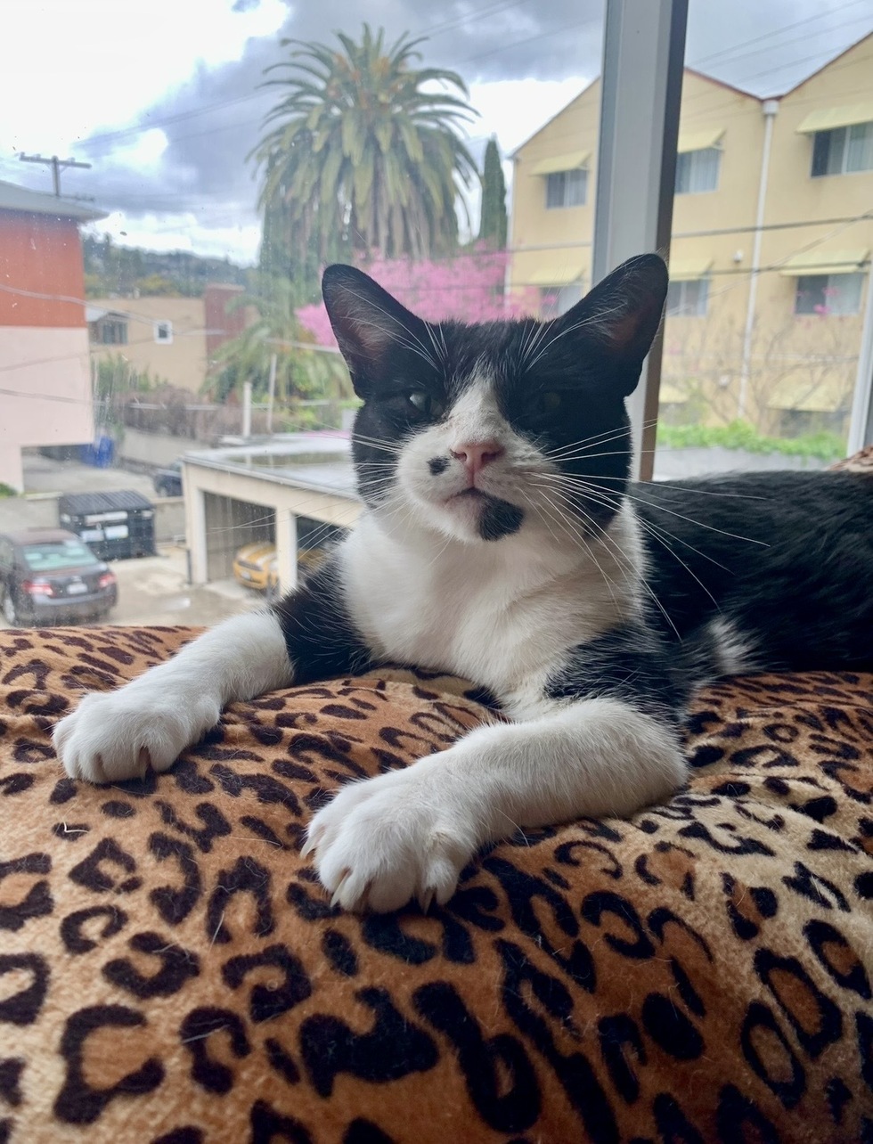 My name is YooHoo and I was found on the streets of South Central Los Angeles with mange/scabies & FIV+.  No one really knows how old I am but I think I spent the first 5 years of my life on the streets! My people at Best Friends Animal Sanctuary didn't think I would ever recover fully from what I experienced as a stray. But after some tender love & care, I am a thriving kitty in my forever home with my mom. She first took me in as a foster while I recovered from an eye surgery. She could not resist my handsome face and dazzling personality.