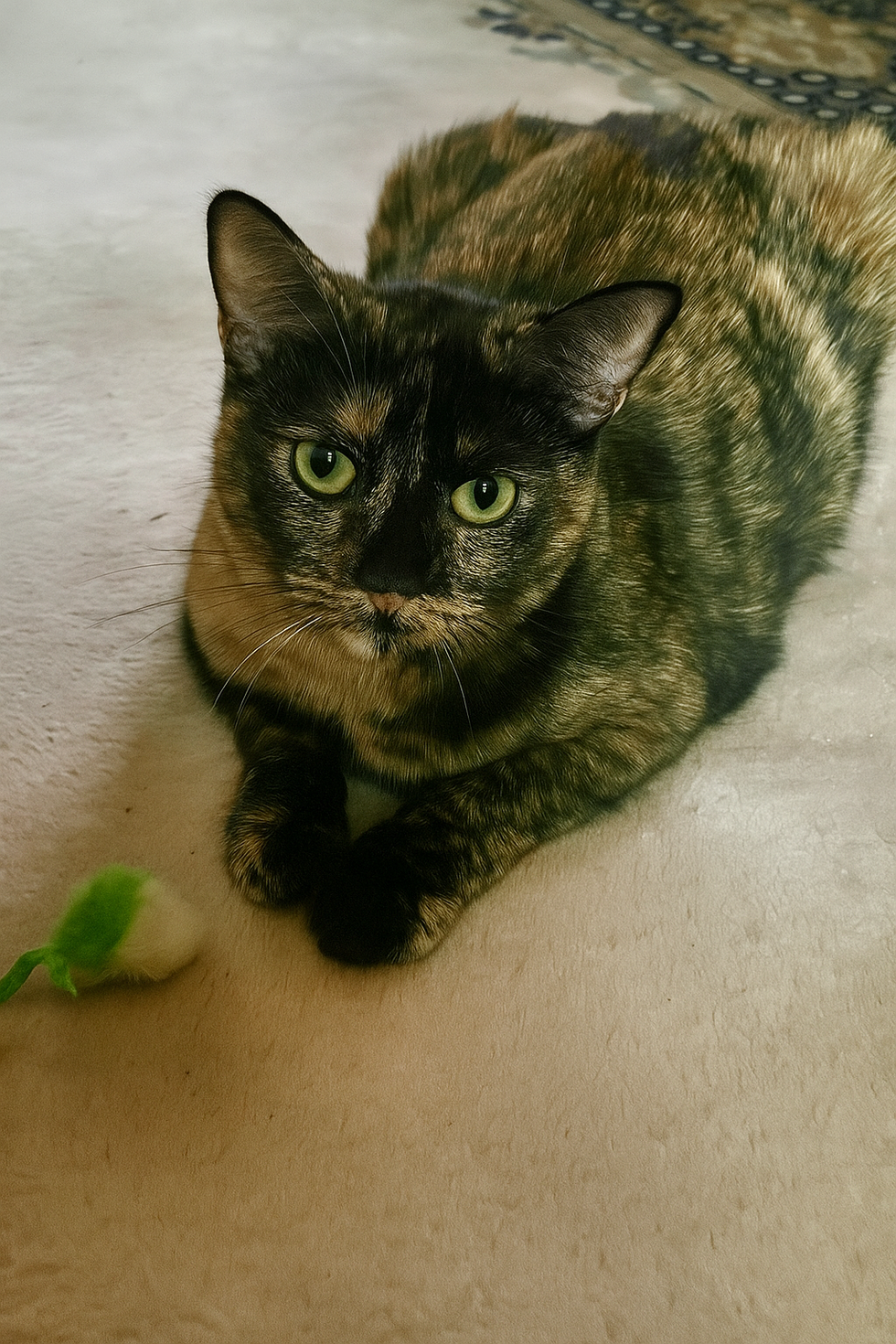 We adopted Jolene last October she was 8 months . We went to the adoption event and we saw her and fell in love with her! She came right out from the back of her cage to get pets.She has the best purrs!!!Jolene is full of personality and sass and we love her to pieces 💕