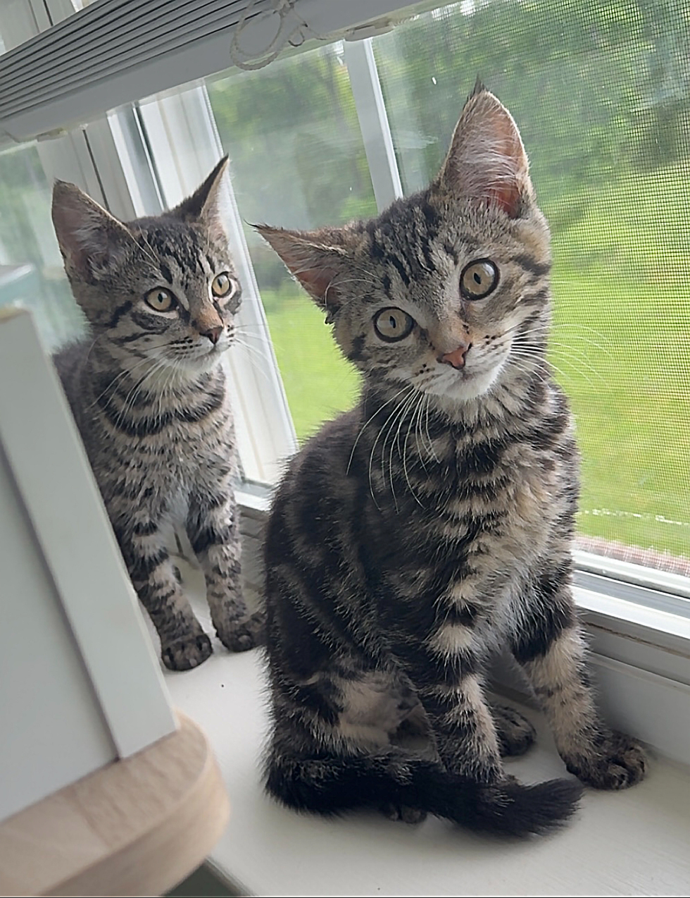 Zuko and Azula were born in early April 2025. They are a bonded pair who we fell in love with. As first time cat parents they have been the perfect pair! They are goofballs who spend their time cuddling with each other, playing or trying to drive their dog sibling crazy! Just two kitties learning and exploring the world! Love them both so much!