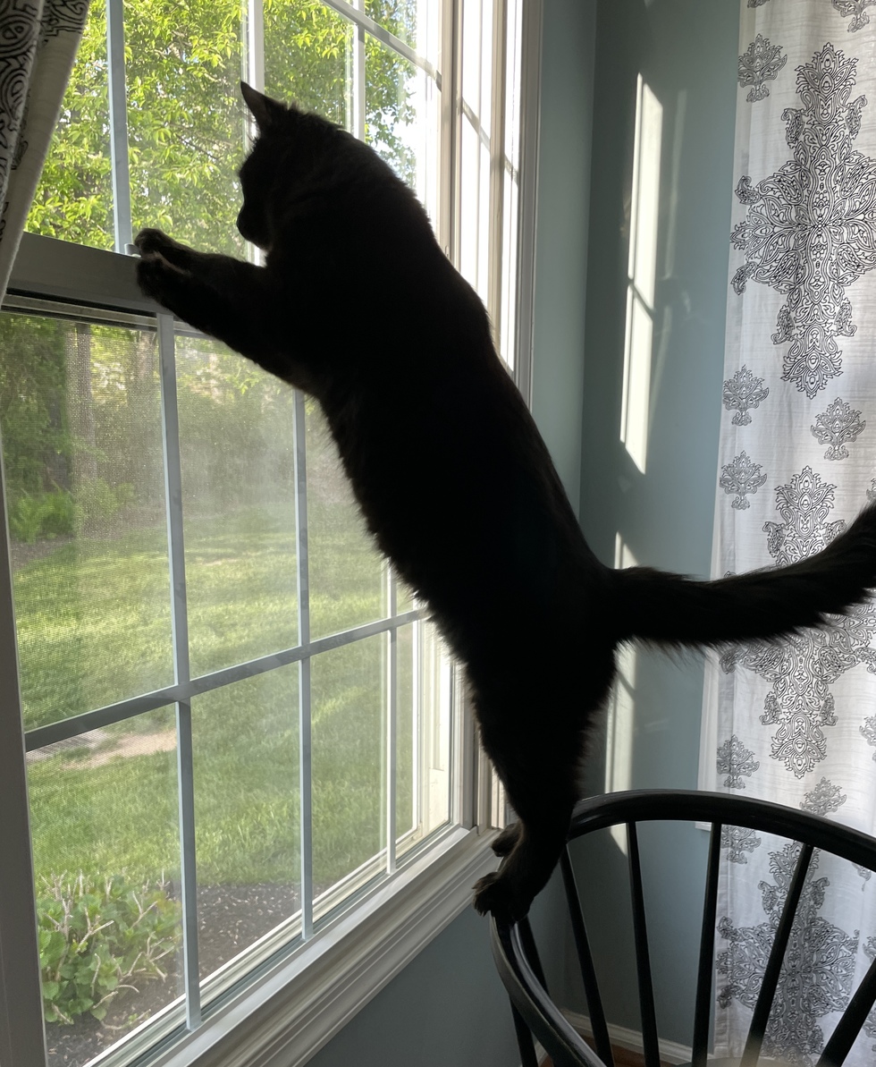 When we first met Simon, my son immediately knew that Simon was the one! We were both drawn to his playful and affectionate personality. Little did we know how mischievous he was too! He loves climbing to high places and chewing on wires is a big attraction too! We found we had to kitty proof our home! He has settled down a bit and loves nothing more than a belly rub and scratch under the chin. We often joke he is half dog! We look forward to coming home each day knowing he will be laying on his back near the door looking for that belly rub. He brings smiles and laughter to our home every day!