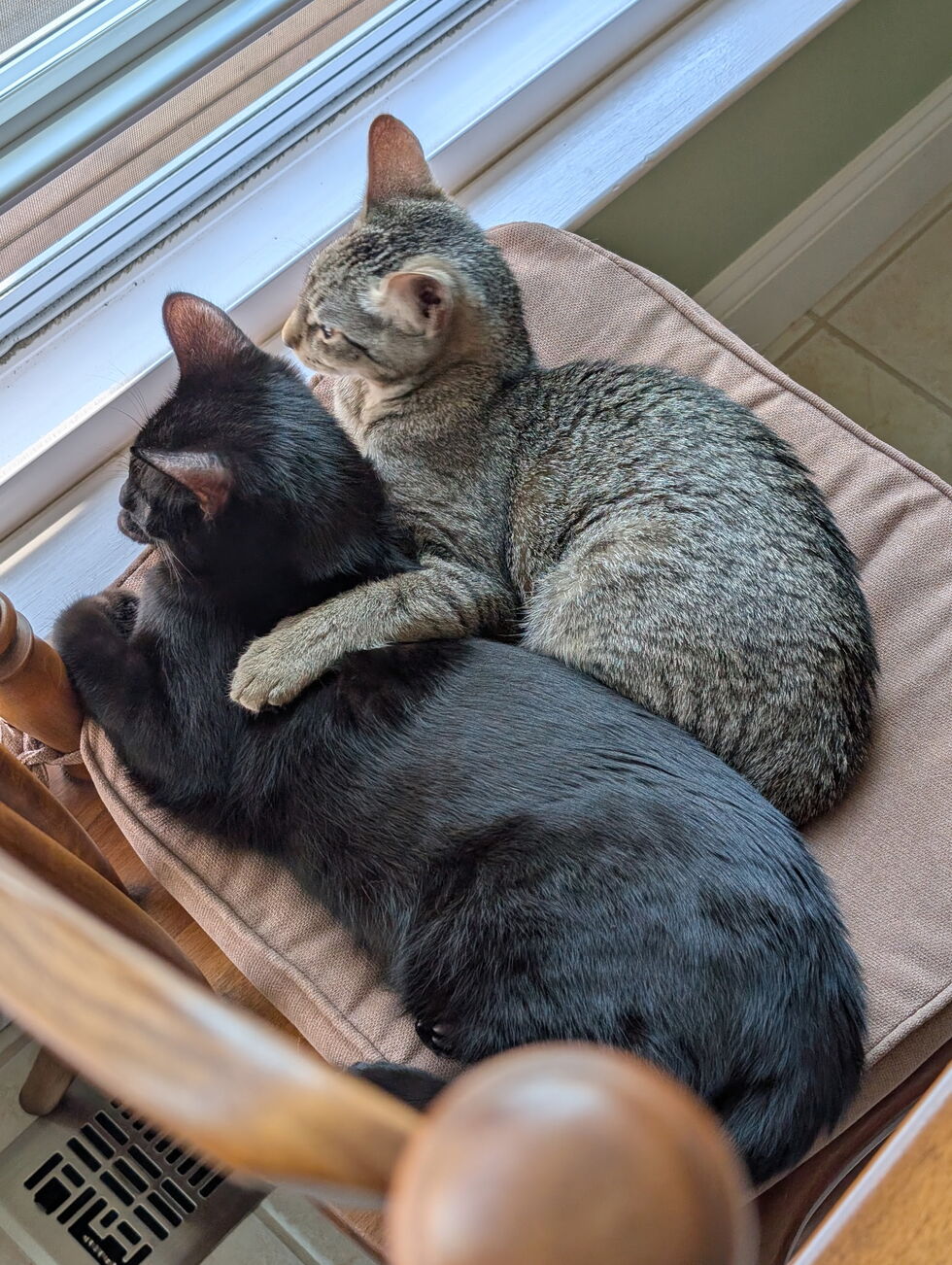 We adopted Dragon and Willow a month ago. They made themselves at home already. They love looking outside, playing together and food.