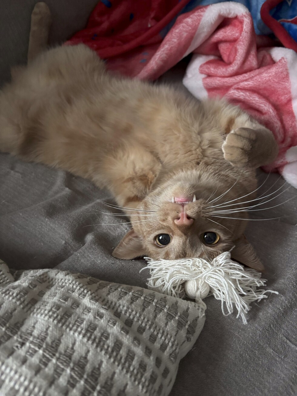 With much encouragement from my young sons, I felt like our home wasn't complete without a sixth (that's right, sixth!) cat. Timothy won me over when I came to meet the kitties at PetSmart. He was silly and playful, sweet and cuddly. And with a house full of black, white, and gray cats, we needed a splash of color and decided to throw this crazy orange guy into the mix.
