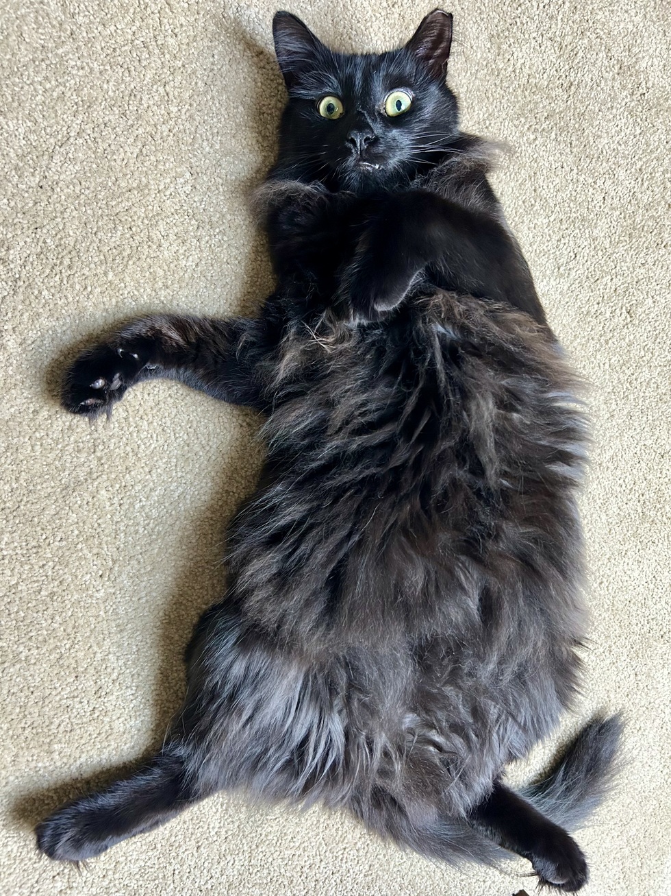 Was looking everywhere for a cat that could be rescued without a buddy and came across the cutest fluffiest little man. He was very scared when I got him. It took me 3-4 months to get him comfortable. He absolutely loves my baby girl and alerts me anytime she wakes up or cries. Even though he was a stray, this boy has a very bougie food pallet! He’s super lovey, playful and very loud hahah!