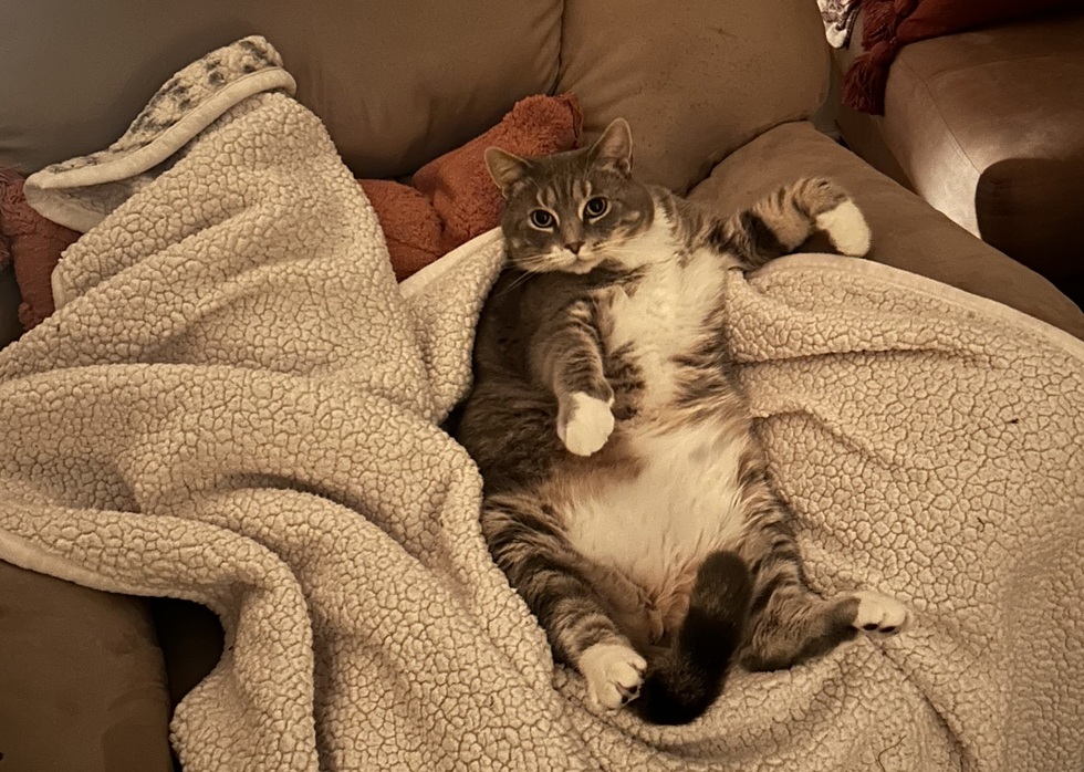 We found Peter on Stray Cat Blues Web site in 2024. It was a love of first sight - this big boy was in need of love. We have just lost our previous boy to cancer and we were ready to give a loving home to a new furry friend. Once we met Peter we knew its a match. Although he was shy initially, Peter settled well in the new home and is now perfectly comfortable. He is 7 years old, indoor cat, maybe a little overweight but very playful and friendly. He is the ultimate lap cat.
