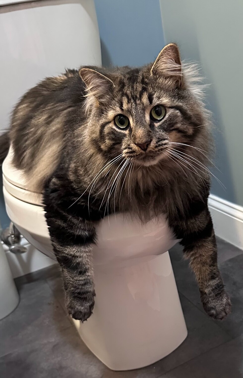 Peter was thrown out on the street by his previous owners. He suffered a broken leg and dislocated hip. He was taken in by Stray Cat Blues when he kept trying to come into the home of one of their volunteers. He completed our family when we adopted him in May 2024. He is super smart and has a super sized personality. He loves to be around people but is a hands off kind of kitty. Except when it's bed time or when he is at the the vet's office, then he turns into Mr. Lovebug and wants to love up on mommy and daddy. He is a very stubborn kitty, but his strong personality is one of the reasons we fell in love with him. His sisters are not very fond of him but his brother enjoys his company and play time.