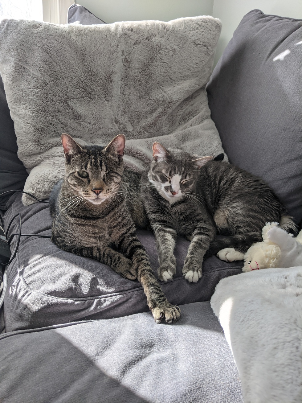 Toulouse (on the right) came to live with us in 2017 and quickly became a mamma's boy. He is shy and cuddly. Captain Kitty (on the left) joined in 2019 as Maya's loyal companion and protector. Captain Kitty runs through the house like a ninja warrior.