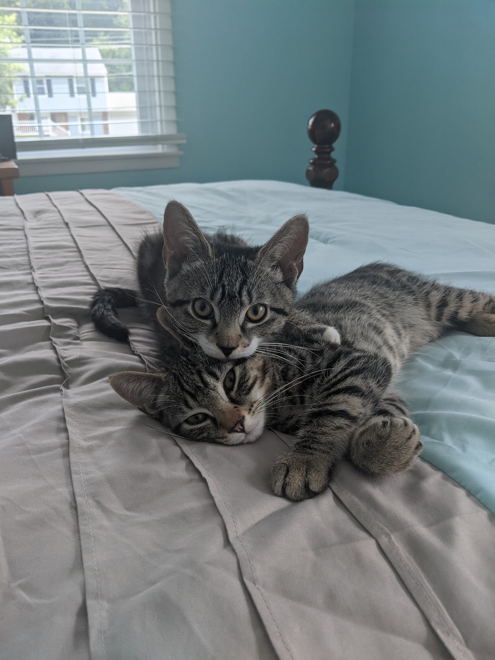 They were rescued from a kill shelter thanks to stray cat blues. I found them while searching on pet finder and they were the ones! They are so fun and so loving. Big time snugglers!