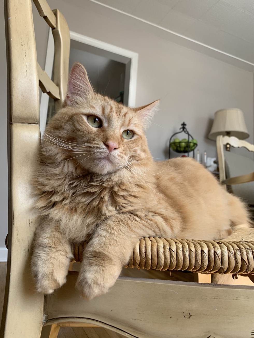 My daughter was looking to adopt a shelter cat. We were viewing a few cats one day. Suddenly, I felt little paws wrap around my leg. Looking down, I could see a large orange cat streatching his arms out of his cage and grinning happily. This is how I met Bobby.