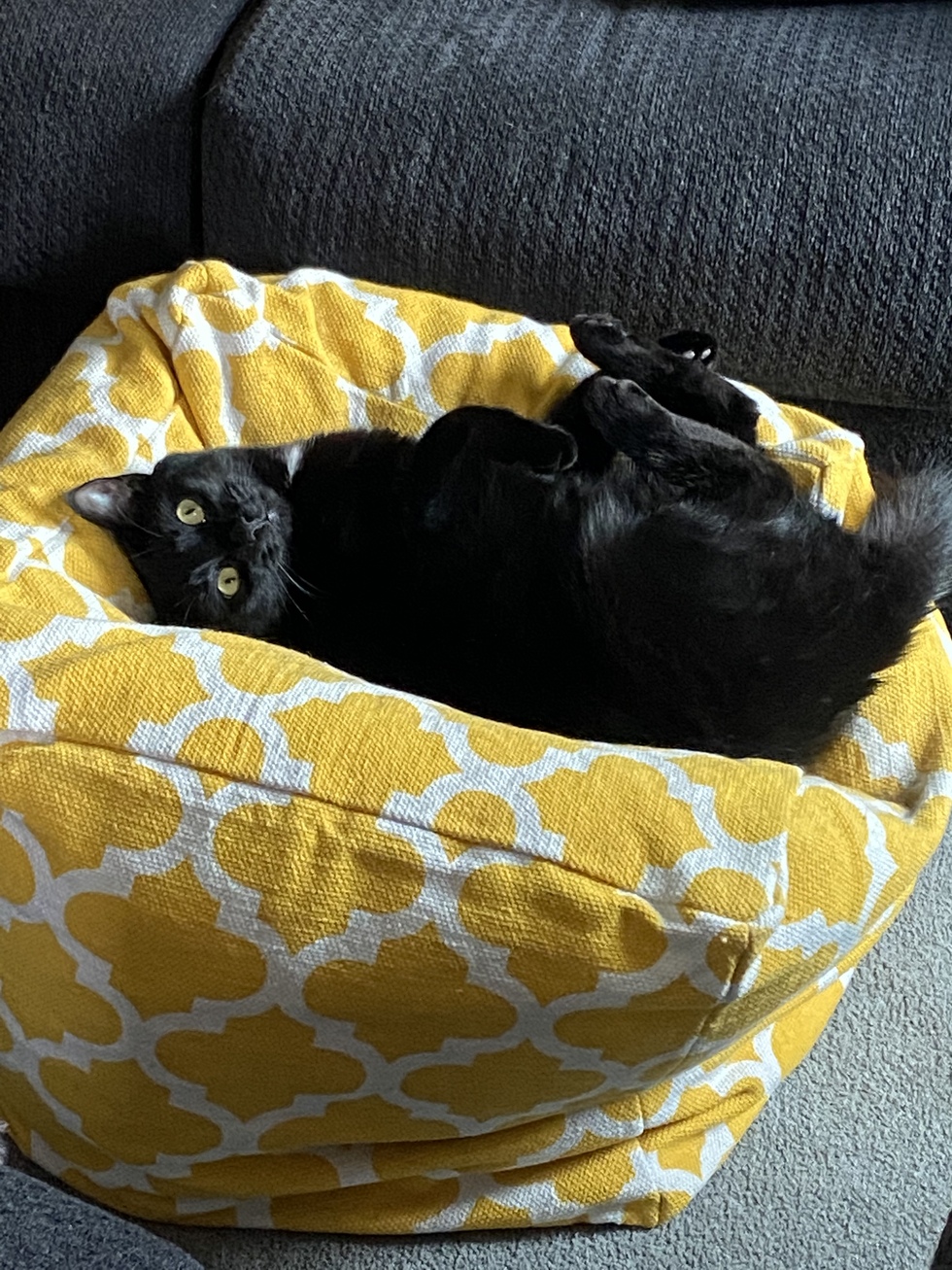 He was found on the streets of Pottstown with his mom. The mom was too feral so they neutered her and left her go back to the streets. Mr Buttons however was such a sweet young boy that I couldn’t resist not to adopt him. His birthday is August 12 and is now going to be 3 years old. As you see in the picture he is a character and always happy.