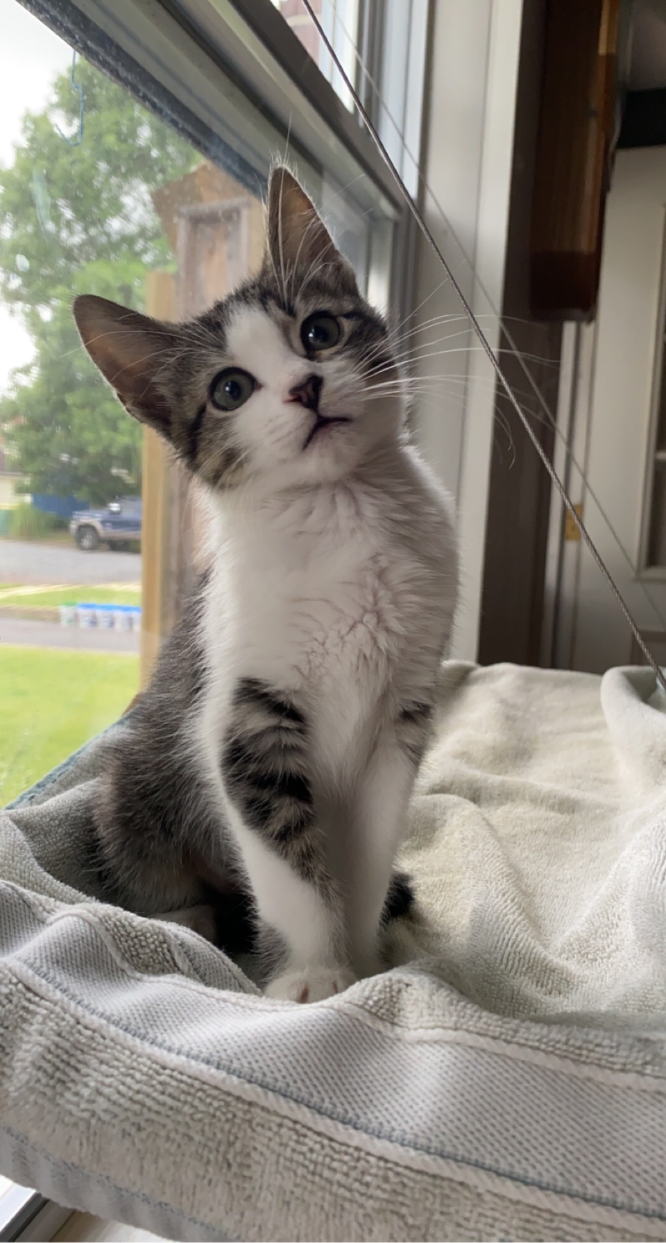 We adopted Bella (formerly Daisy) after losing our 15 year old cat. We went to Petsmart “just to browse” and came out with our tiny little girl. Taking days to name her, we all agreed that Bella was the only name for her because it means “beautiful” in Italian. Her fur and markings are so beautiful, she resembles a little tiny fox and her fur is so dark it’s almost blue and the white fur so icy looking. She sleeps under the covers with us like a little human and she has bonded well with our other two girls, Chloe and Pumpkin. She loves her canned food and she jumps around like a bunny. Her playful energetic personality also leaves her exhausted, to which she meows until we hold her to put her to sleep. Another spoiled baby of ours! A perfect addition to our family. Can’t imagine our home without her! ❤️