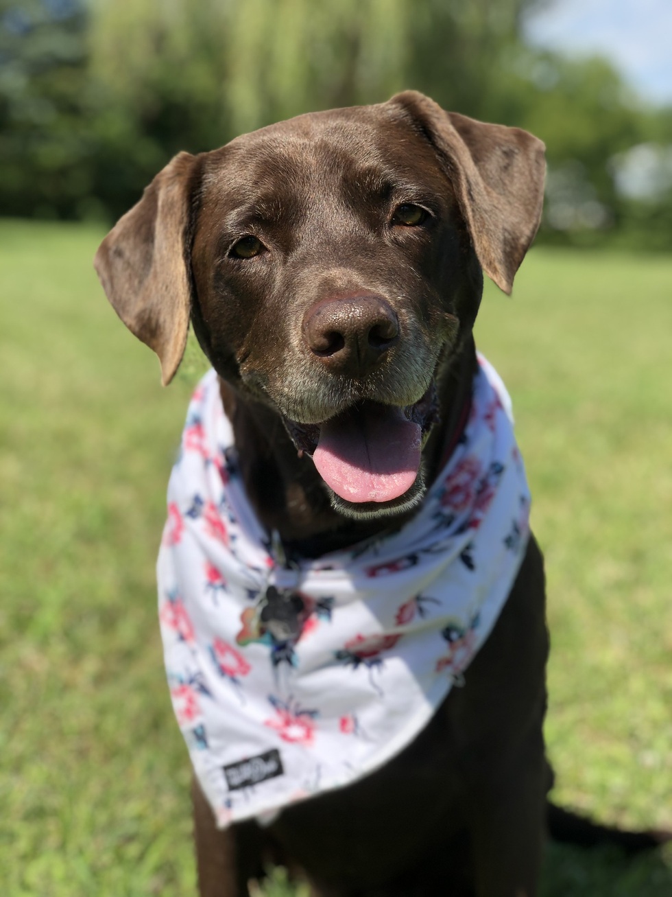 Dog's Story or BioBailey is the sweetest, smartest, most loving, best dog ever! She is a chocolate lab that is 9 years young and loves to chase 4-wheelers, play fetch, go swimming and do tricks for treats! Her favorite day of the year is Wag Fest and her favorite dog park is prairie oaks metro park. She is always sporting a pretty bandana and joins her family every year dressing up for Halloween. We love our Bailey girl!