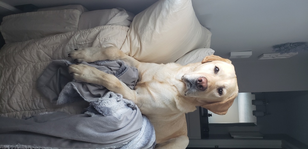 Dog's Story or BioWe took on our first foster dog just over a year ago & 6 days later decided that we couldn't let him go. Howie is the best, silliest, cuddliest good boy out there. He is also a celebrity & always making others smile in our neighborhood by always, and I mean always, having a toy (more notably his duck, gator, or lamby) with him on walks.