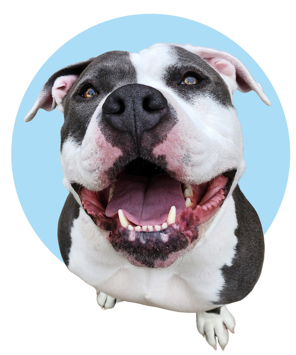 Sweetpea is best described as an exuberant 70lb lap dog, who loves snuggles, snacks, and socializing.