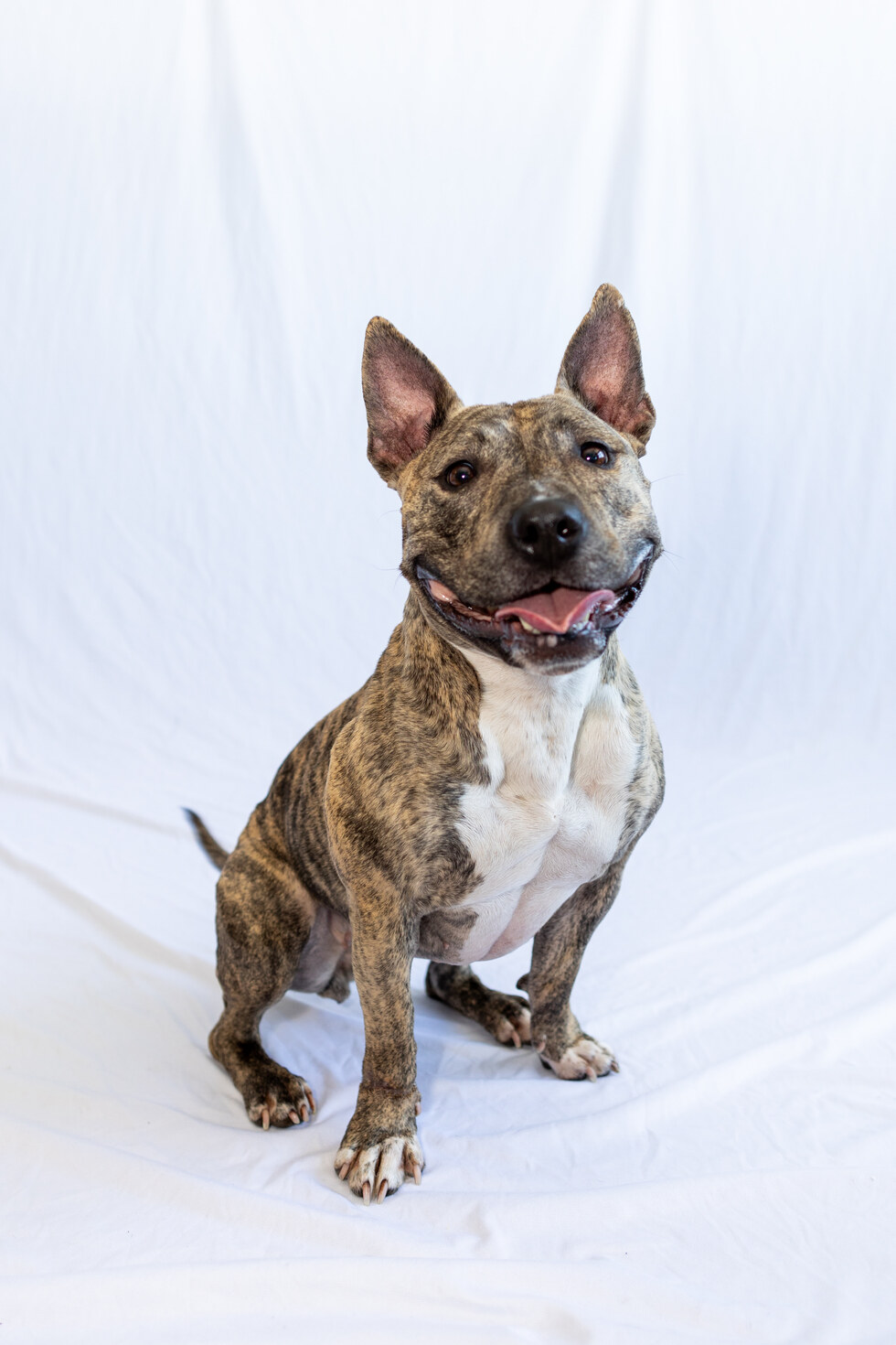 Sugar was discovered on the streets of Tacoma with her front paw nearly severed in 2021. We medically fostered Sugar for about four months as she recovered from a tendon surgery on her front paw. At the time Sugar also had a torn ACL on her back leg and a sprain on her other back leg. She’s grown so much since then and has recently become a big sister to twin baby boys.