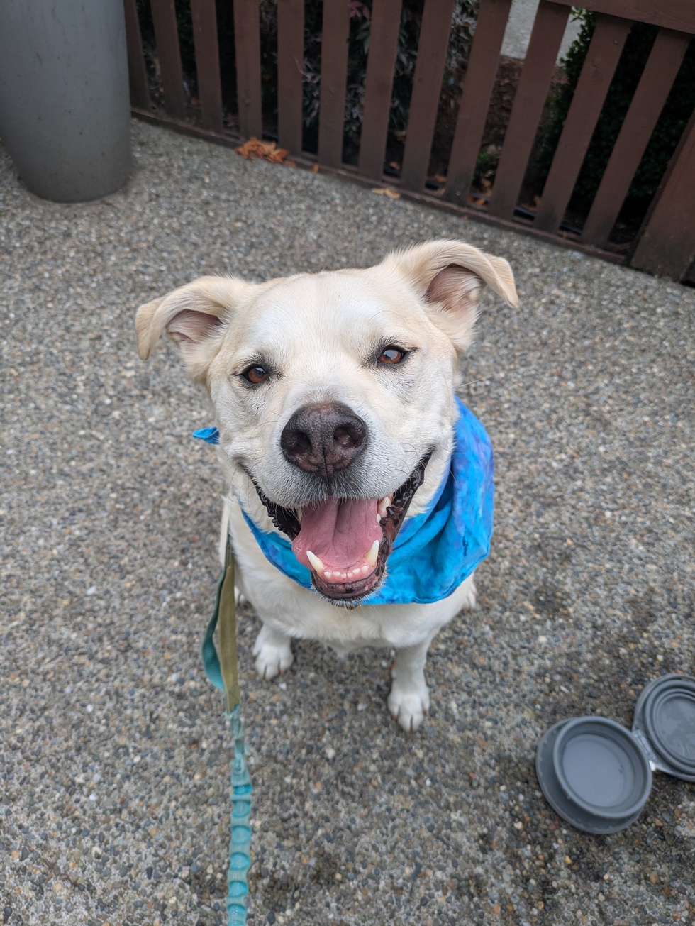 Rhododendron (Rhodee) is an excitable and loving lab/husky/pitbull mix. He was allegedly rescued from a poor living situation as a puppy. He loves to share his big smile and wants to be everyone's best friend. We're grateful for the love and joy that this sweet doggo brings everywhere he goes.