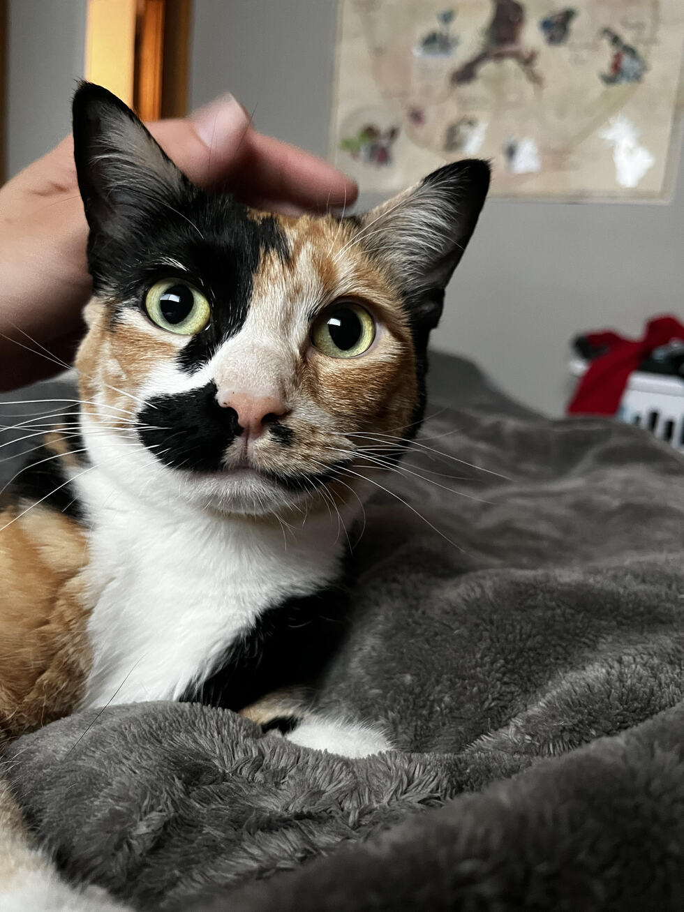 If you tell her to jump, she asks, how high? (especially when there is a pony-tail elastic or feather toy involved). She has a beautiful singing voice around meals and makes gremlin noises when she has the zoomies. Whether hanging around the apartment, or going to visit her kitty great-grandmothers house, she is a confident and composed kitty who would look great on the side of a van.
