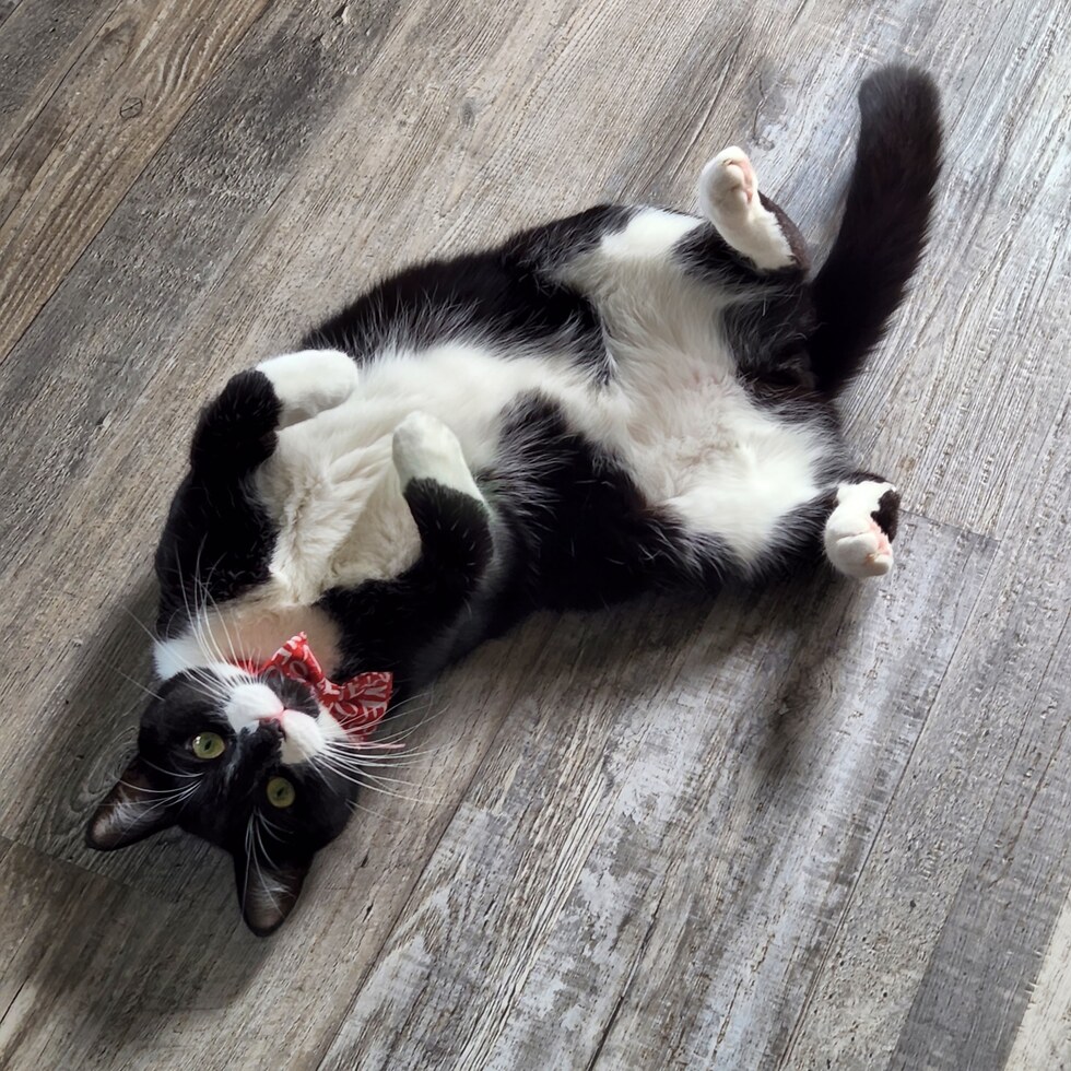 Pet's Story or BioHi, I'm Leo! My family adopted me in March 2021 from the Tacoma Humane Society, and I'm now almost 2 years old. My pawrents call me "The Most Interesting Cat in the World". I love looking dapper in my bow ties, and chasing anything that moves! I know how cute I am, and constantly use it to my advantage. I live for love and treats, and will gladly accept them from anyone and everyone.