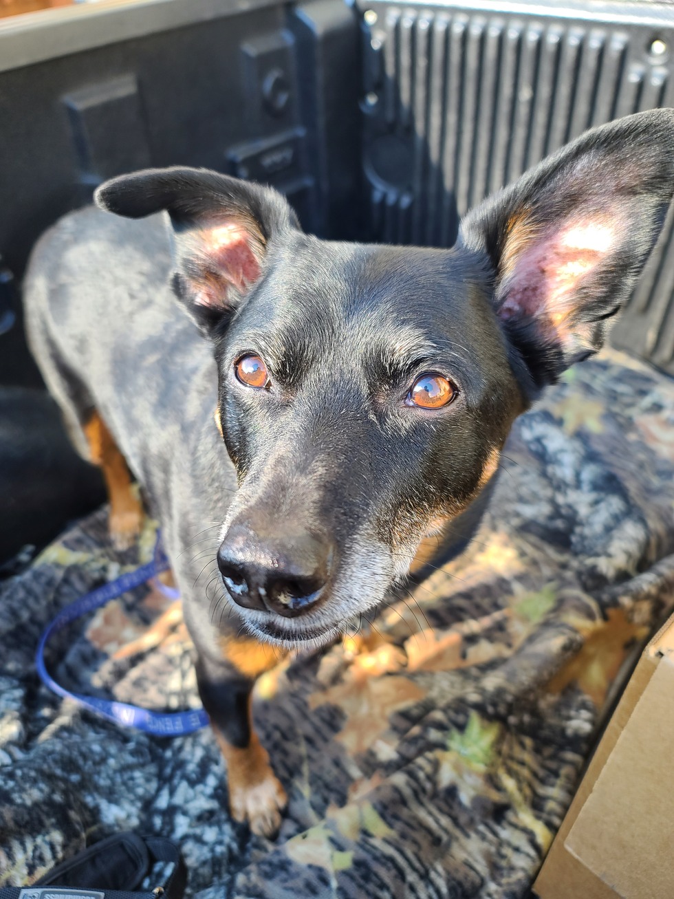Pet's Story or BioI rescued Happy in 2013 from the tacoma humane society when he was 2 years old, he is now 12 years old and loves sunny days, playing in the sprinkler, chasing glares, truck rides and going to work with me. He's the best dog in the world.