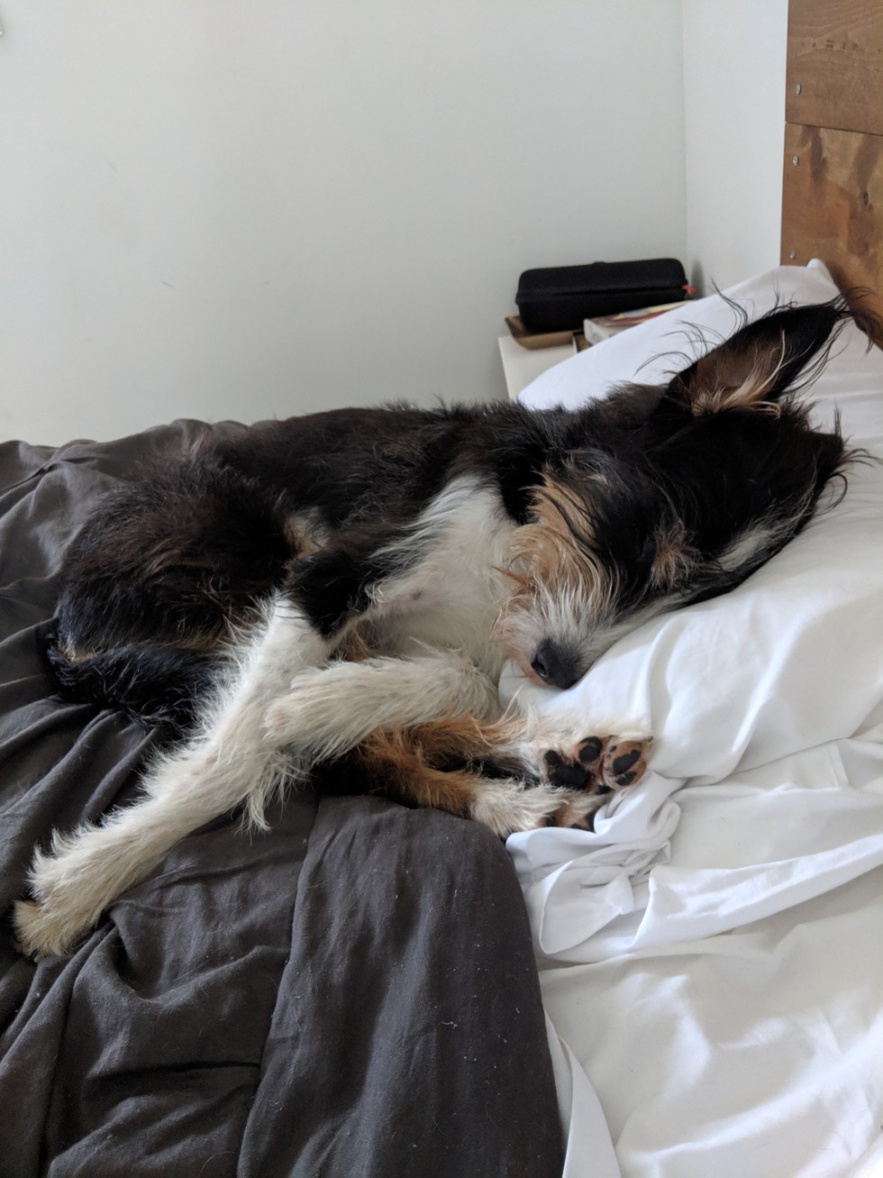 Back in 2015, my husband and I decided that our first dog, Monty, needed a friend. We came to Tails and Trails where we met a few dogs, but when Oakley came into the room, I knew he was ours. Oakley sleeps in the funniest positions -- often on his back or with his head on a pillow, just like a human. He always wants to be wherever we are and he hates leaving the house - he's a homebody like me. Monty and Oakley are like true brothers, playing together and annoying each other and just generally being loud. :)