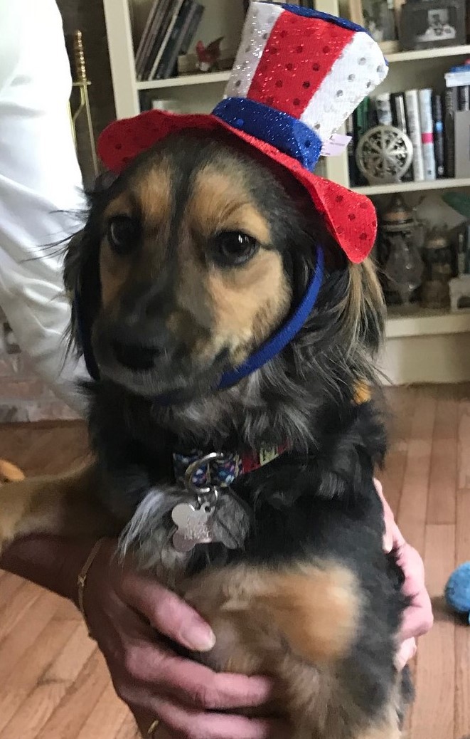 She loves people and chasing her ball around in the yard. She is not a fan of fireworks but still wanted to be festive for the 4th of July.