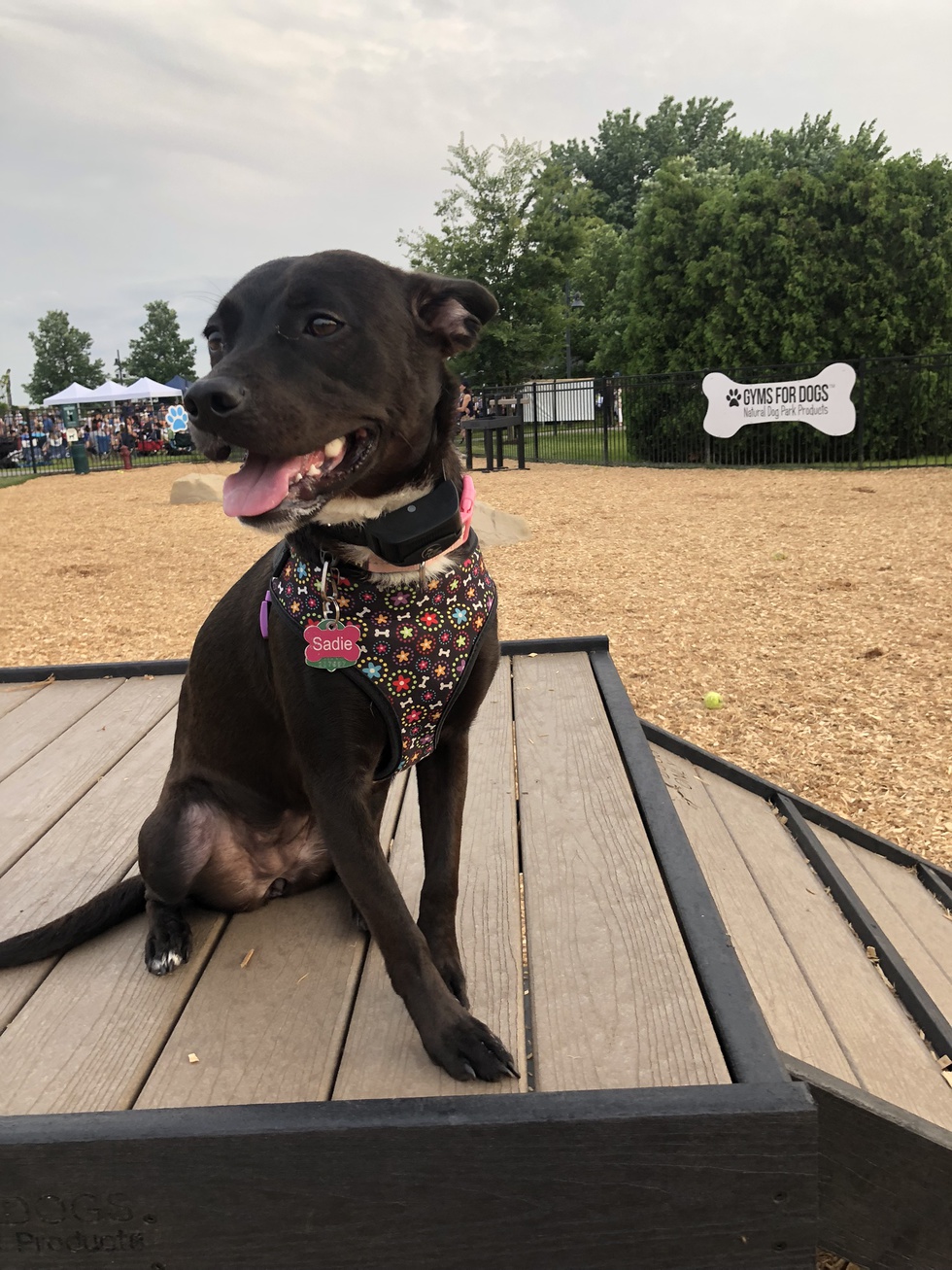 Sadie (Valerie) was one of the V pups rescued by Tails and Trails in 2018. This is her favorite spot at her mom’s dog park at Clay Terrace Mall in Carmel, IN.