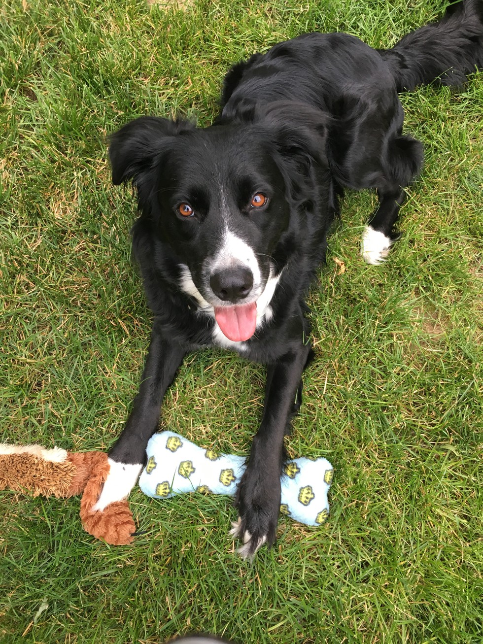 We adopted Ceilidh (Scottish for celebration, and pronounced kay-lee) on Christmas Eve 2018, nearly a year after our last dog had left us. Ceilidh’s Tails and Trails name was “December,” and she was rescued with her two surviving puppies. When I saw her online photo, it was love at first sight, and how lucky we were to bring this amazing dog into our lives. I have no doubt that we needed her as much as she needed us, and it has been a perfect match. In the 7 months we’ve had her, we have logged dozens of miles of walking, and she has already completed five courses (including agility training, which concluded with her doing a ten-obstacle agility course off-leash with amazing success!). Now she is in Treibball (look it up!). She’s beautiful, smart, goofy, joyful, gentle, and above all, loving and loyal – a perfect dog for whom I’m thankful daily.