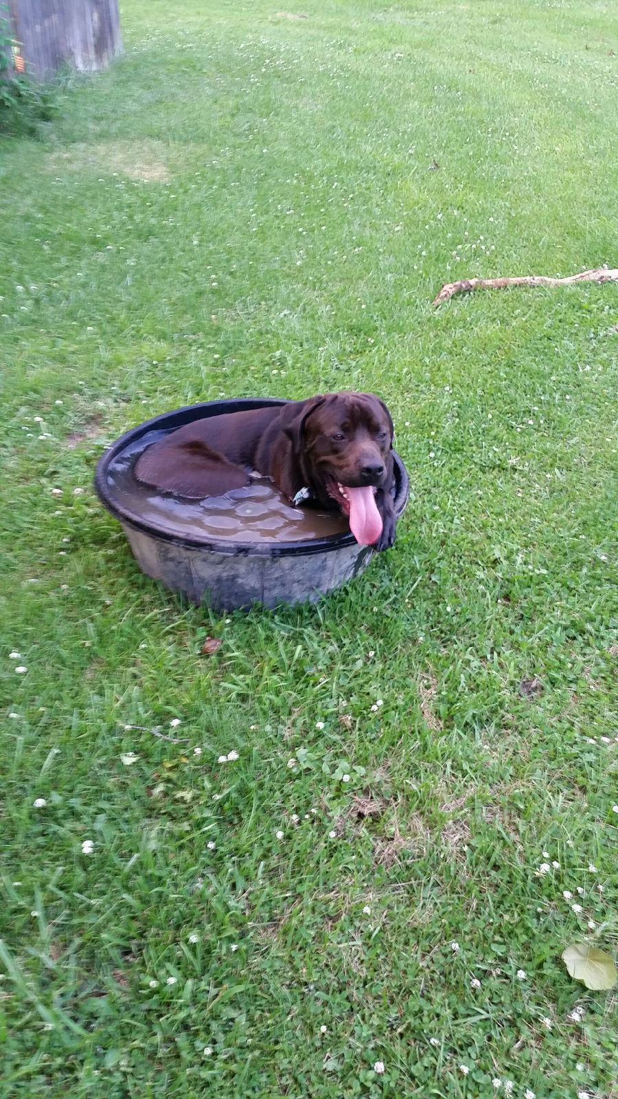 We rescued Hank before he was 1 year old from a home that he had already outgrown. Being a Mastadore, he has nonstop energy and love! His 125# furry self sleeps in our bed not minding when we flop our legs on top of him! Hank loves to go places and greet as many people as possible. And yes, Hank is an excellent ball player!