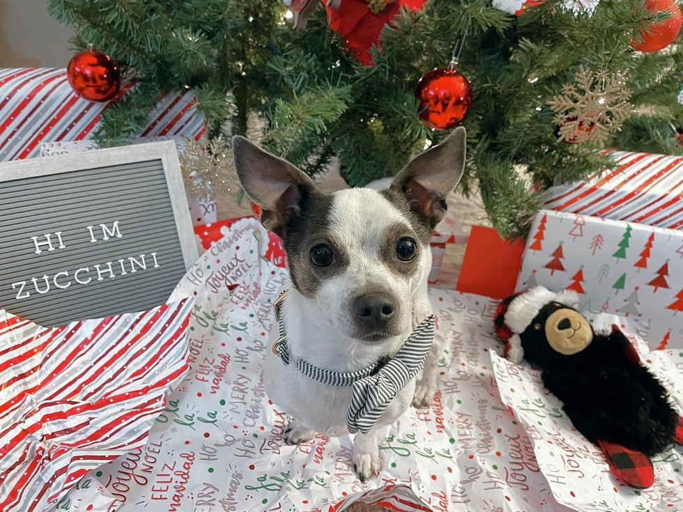 This handsome fella is Zu.. short for Zucchini Tico Rico . Yes, that cute face does get him anything he wants. Welcoming Zu to our family right before Christmas was the most perfect gift, and he actually came to us from the Capital Humane Society after a double luxating patella surgery. Don't think that slowed him down one bit- he is all play and spunk. We're so grateful for the care CHS and his foster family provided him before coming to his furever home. Zucchini is quirky, smart, and loves his fur-sister, Stella. If he's not chasing her or a toy, or waiting for falling crumbs, he's perfectly happy burrowing himself in near his parents on the couch or into a pile of blankets for nap time. He's just the perfect fit for our family and an amazing testament to the time and care CHS provides to animals.