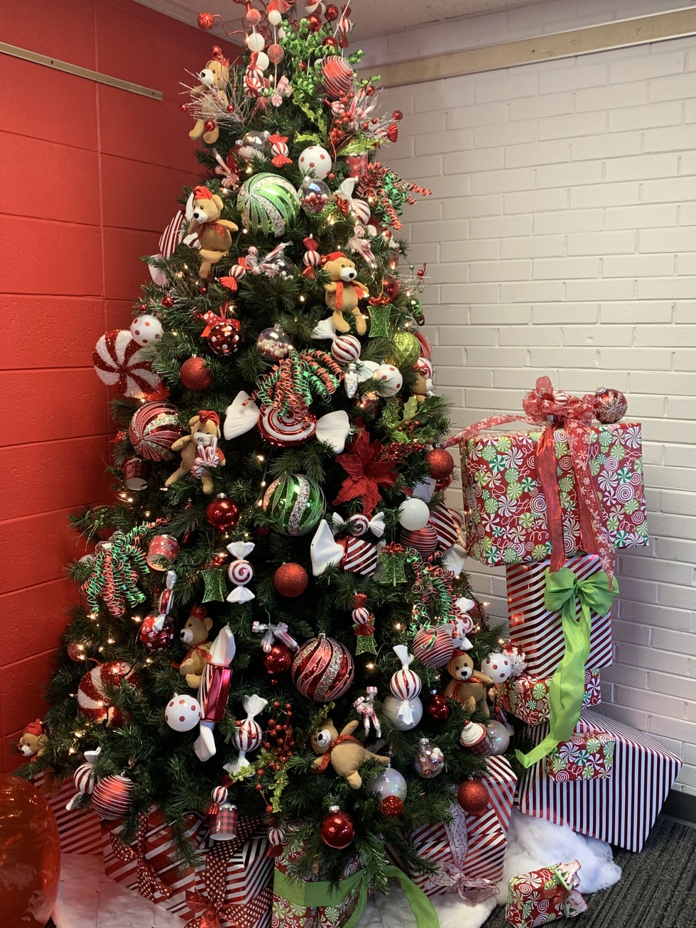 We believe in being kind, engaged, accepting, respectful and safe. Our tree is adorned with red, green and white ornaments. This tree symbolizes the Joy, Love, Hope, and Peace we would like spread throughout the world. We are the Arcadia Bears. VOTE FOR OUR TREE!