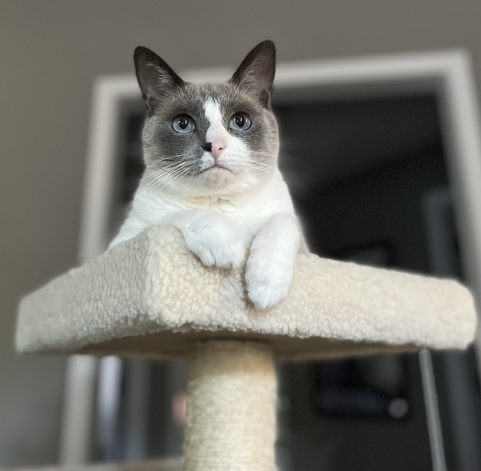 Sansa is a 9 year old Snowshoe Siamese I adopted from a shelter in Florida. She was found in someone’s engine. Sansa loves sunbathing, food, and yelling at her parents.