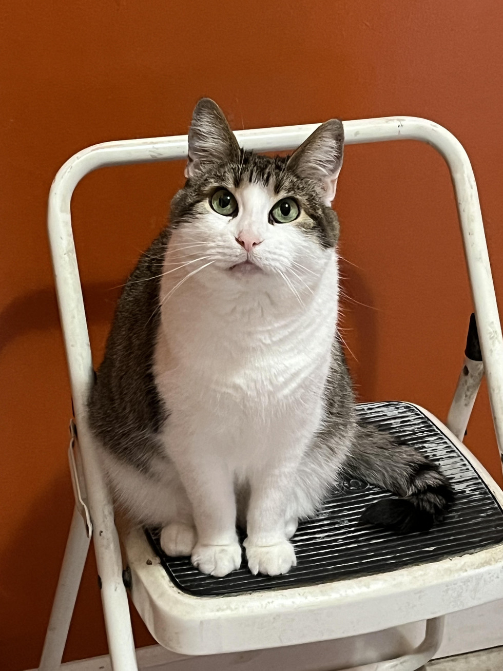 Tim-Tim is 9 years old and is proof that that best cats show up as stray kittens on your back porch. Tim-Tim's hobbies include water sports (dipping her front toes in the water dish) and lap-time on the couch.