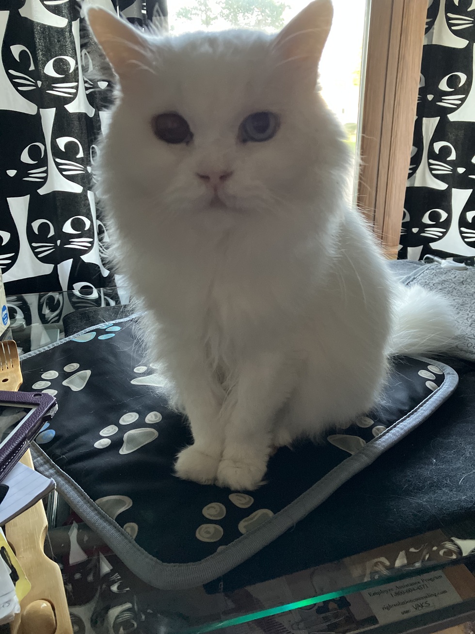 Was a pet cat who was found under a shed in Topeka. After being fixed and shaved he was fostered and found his forever home.