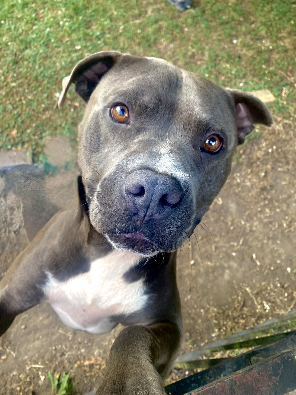 Danny is a 2 year old Blue Pit that just showed up one day. There @ 6 of us that take care of him, all neighbors and now friends because of him. He is our little weirdo that loves diesel trucks, squirrels, walks, allll the walks! Treats, toys and plastic summer pools! We are actively seeking a permanent home for this dude, he’s amazing and will be someone’s permanent best friend if given the opportunity!