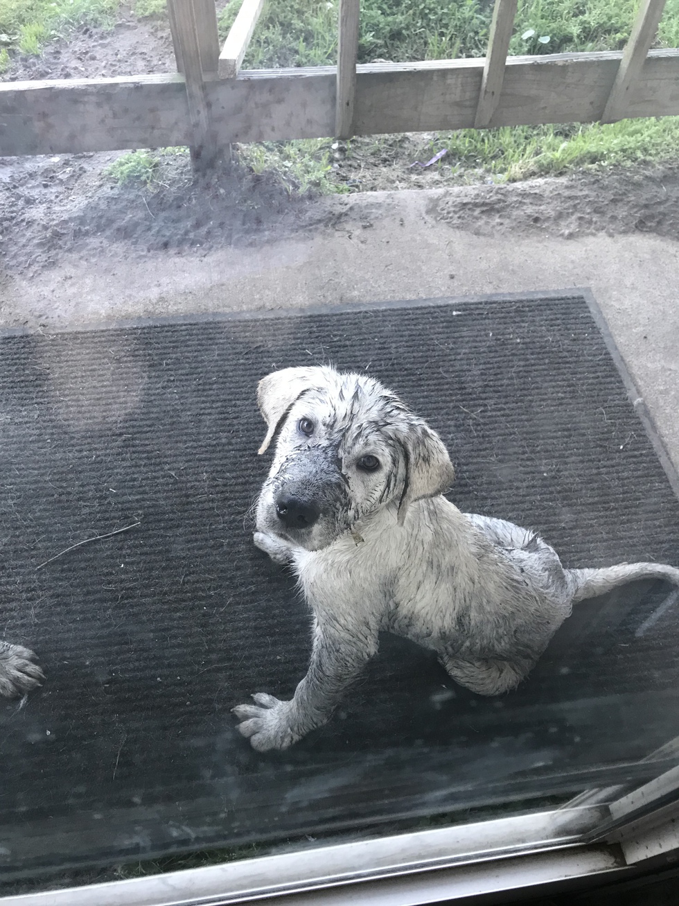 Murray and his siblings were found and all had mange. They went through treatment and are great now.